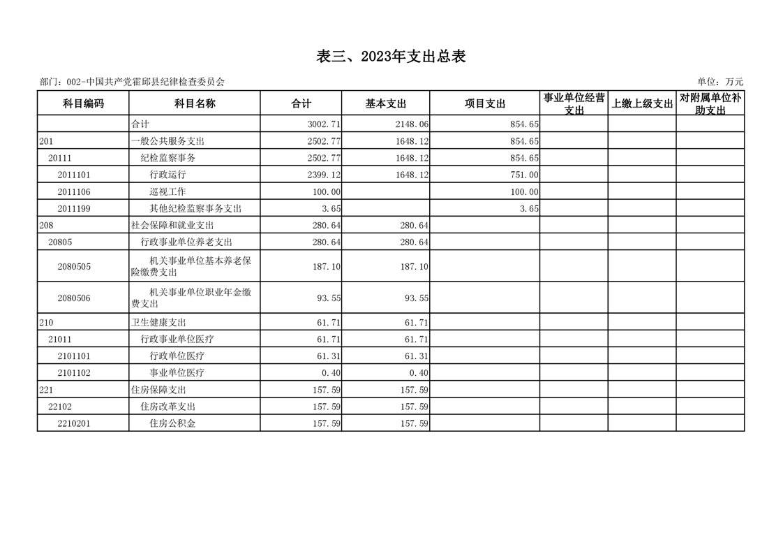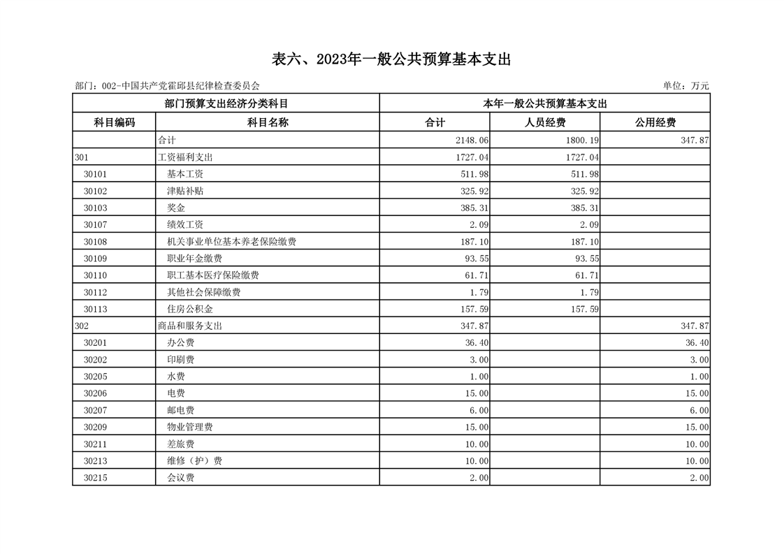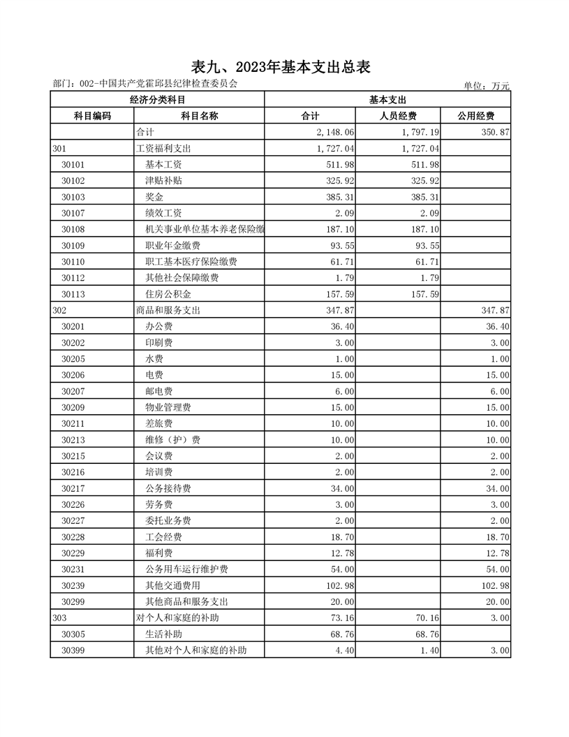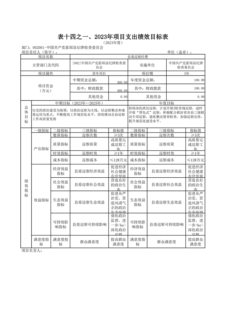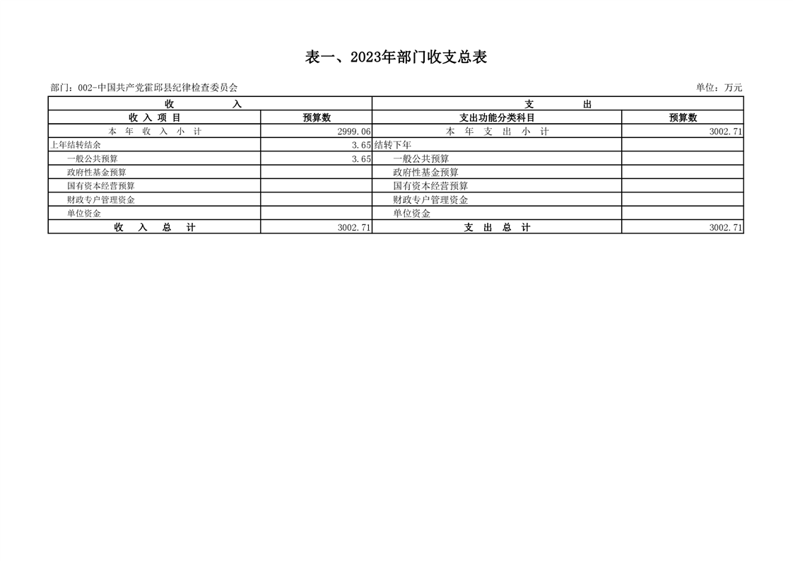中共霍邱县纪律检查委员会2023年部门预算公开