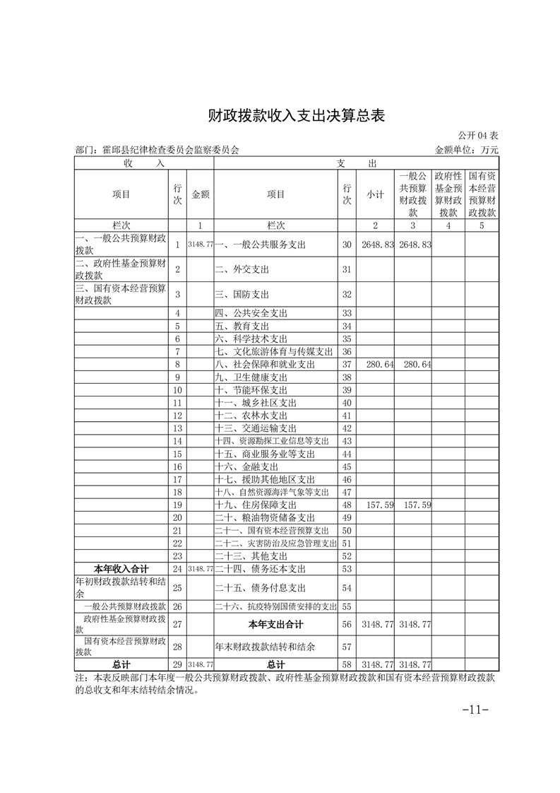霍邱县纪律检查委员会监察委员会2023年度部门决算