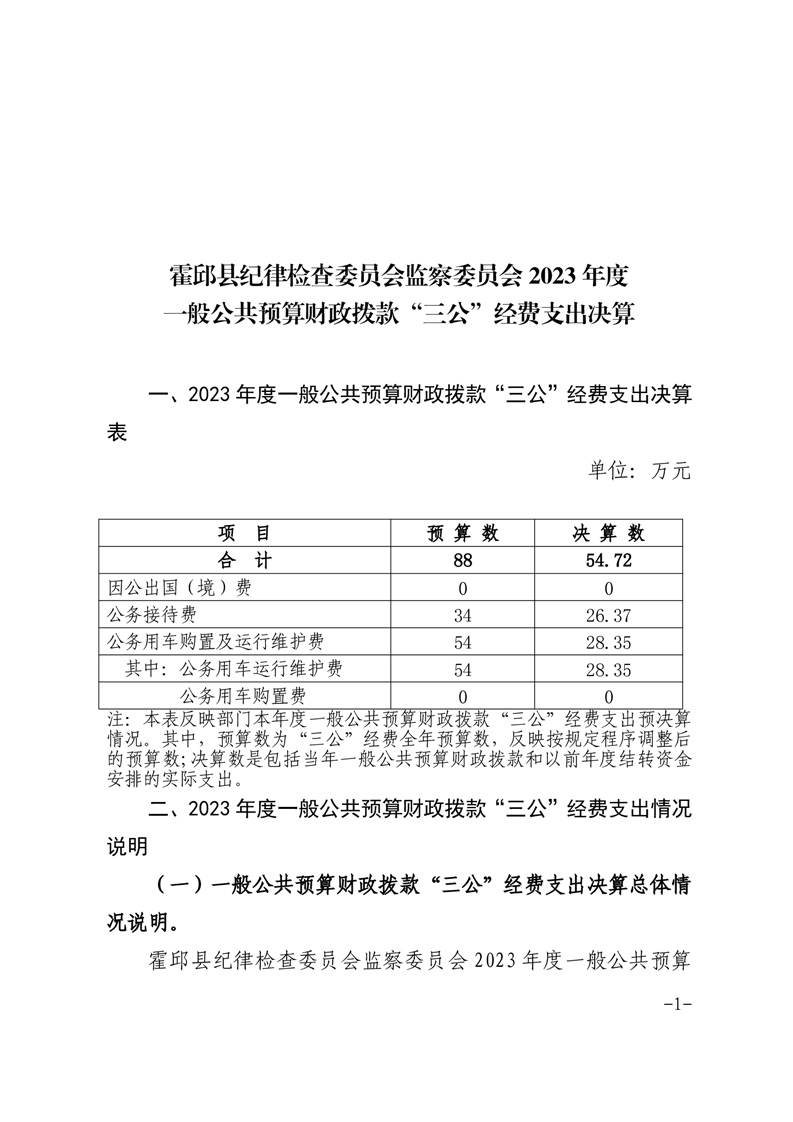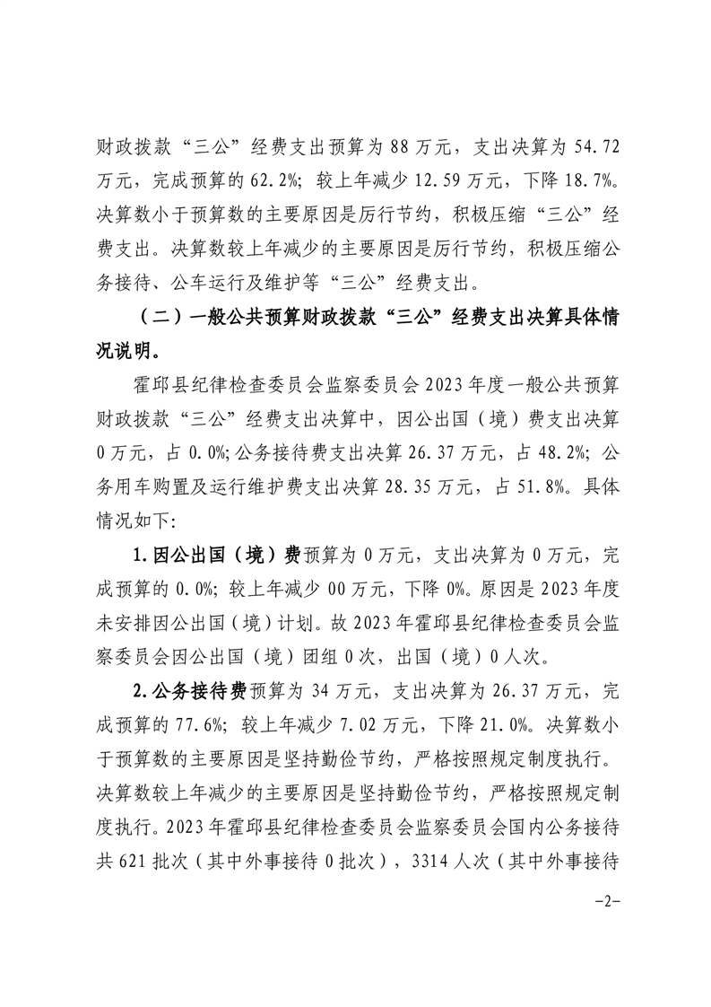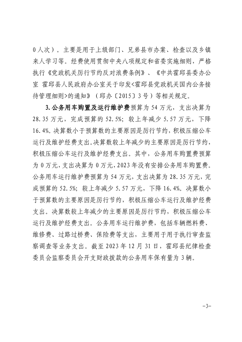 霍邱县纪律检查委员会监察委员会2023年度一般公共预算财政拨款“三公”经费支出决算
