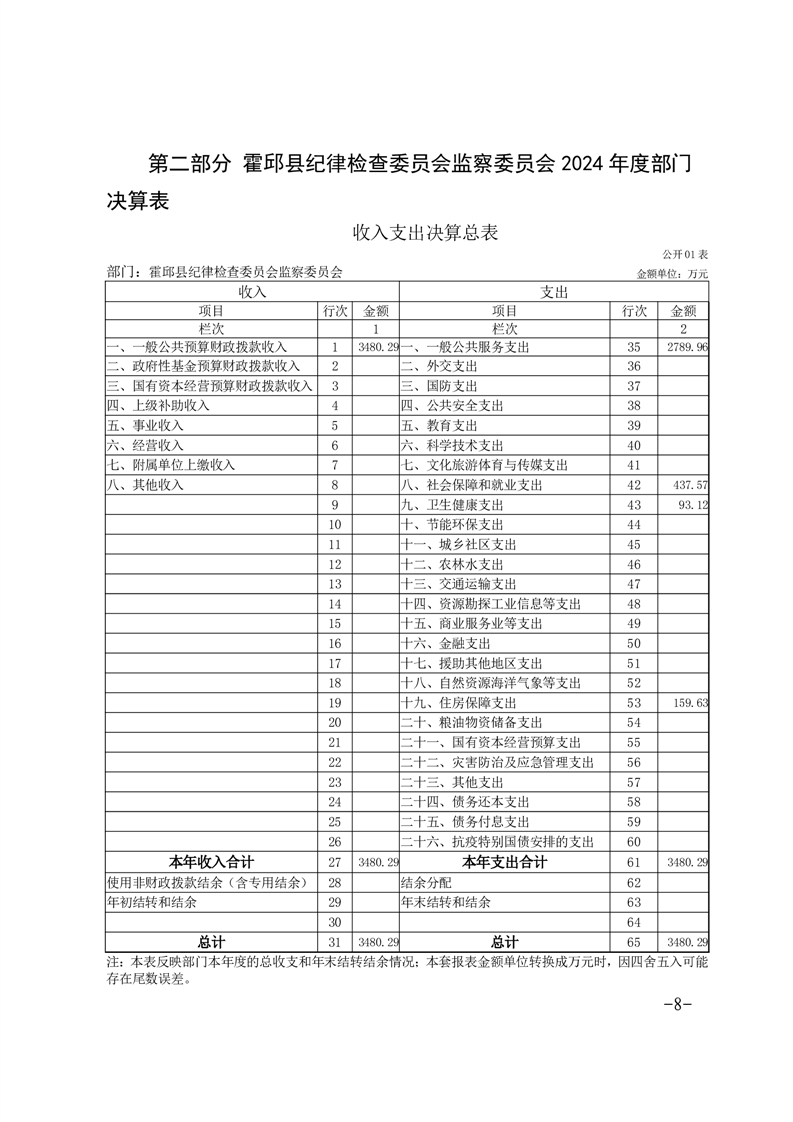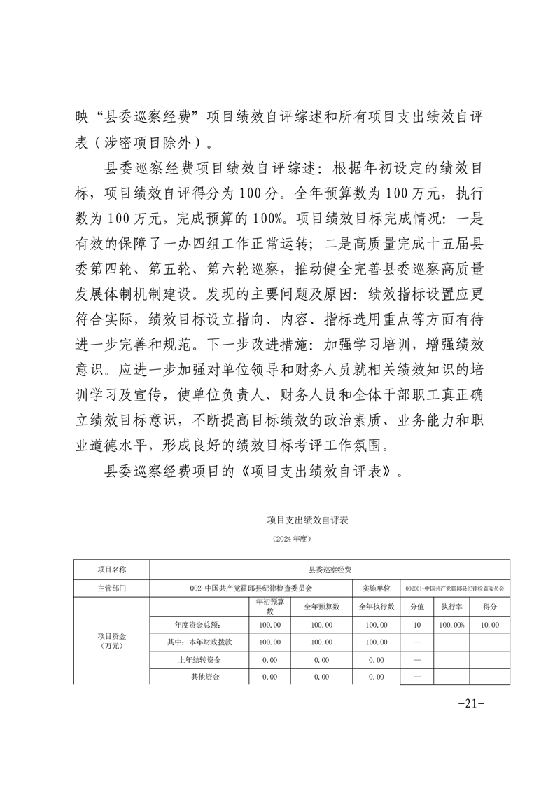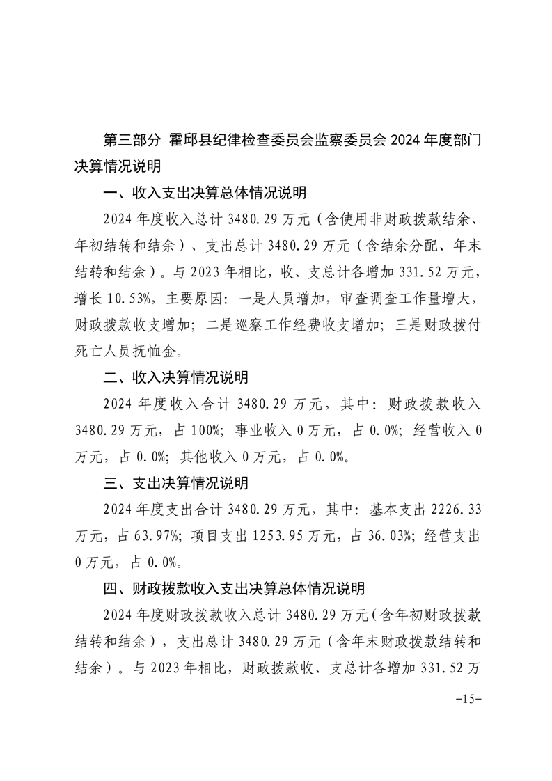 霍邱县纪律检查委员会监察委员会2024年度部门决算