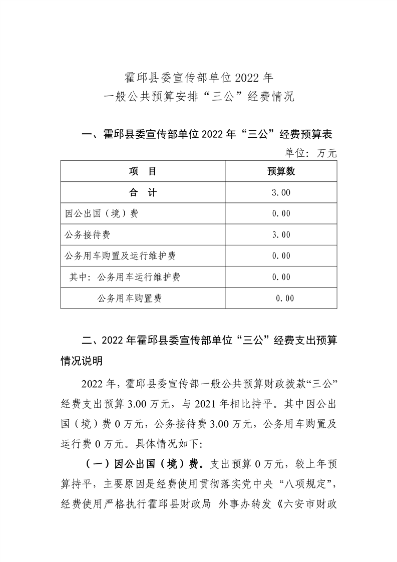 霍邱宣传部2022年单位“三公经费”情况公开