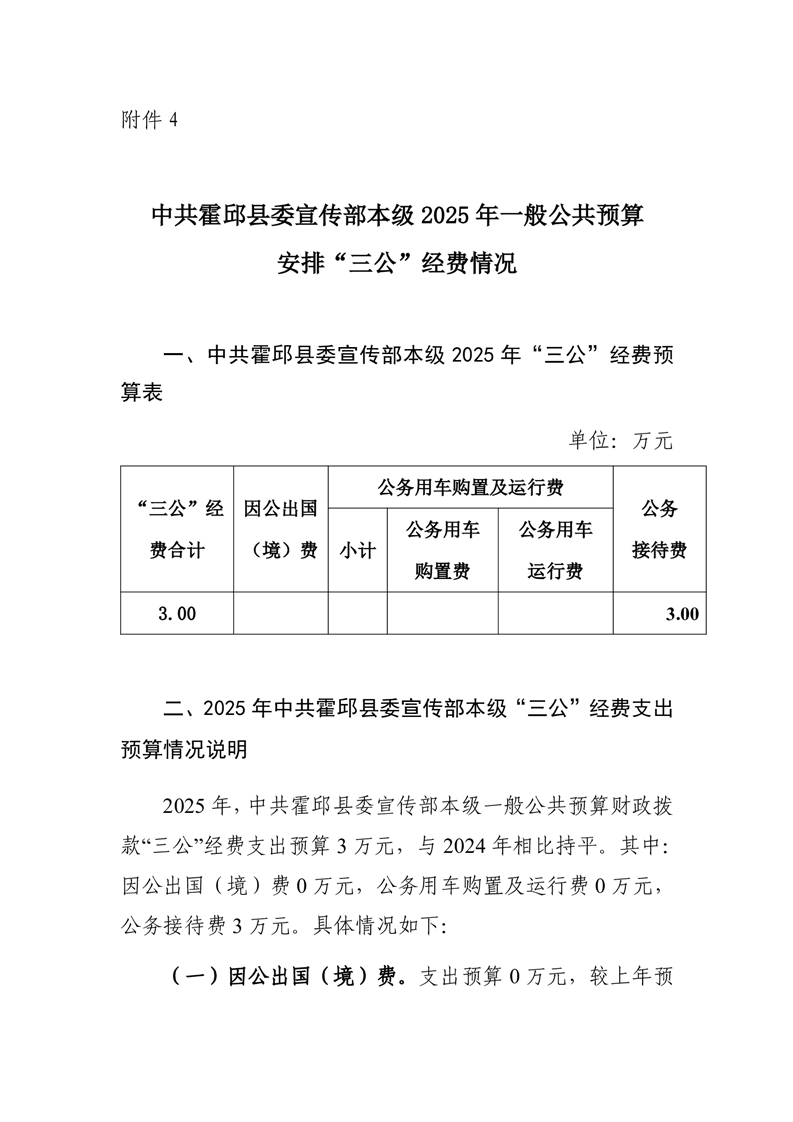 霍邱县委宣传部2025年单位三公经费决算公开