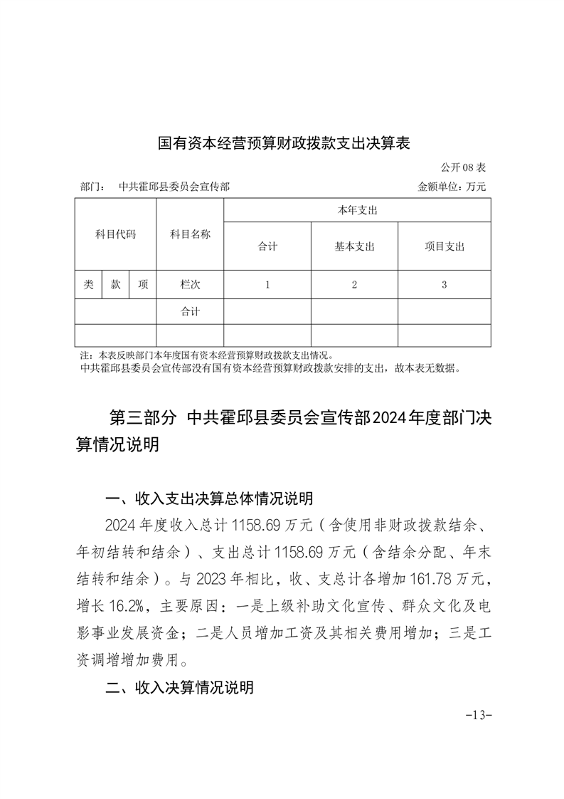 中共霍邱县委员会宣传部2024年度部门决算
