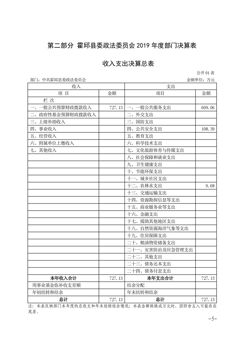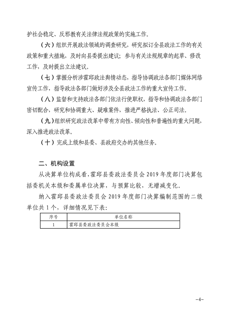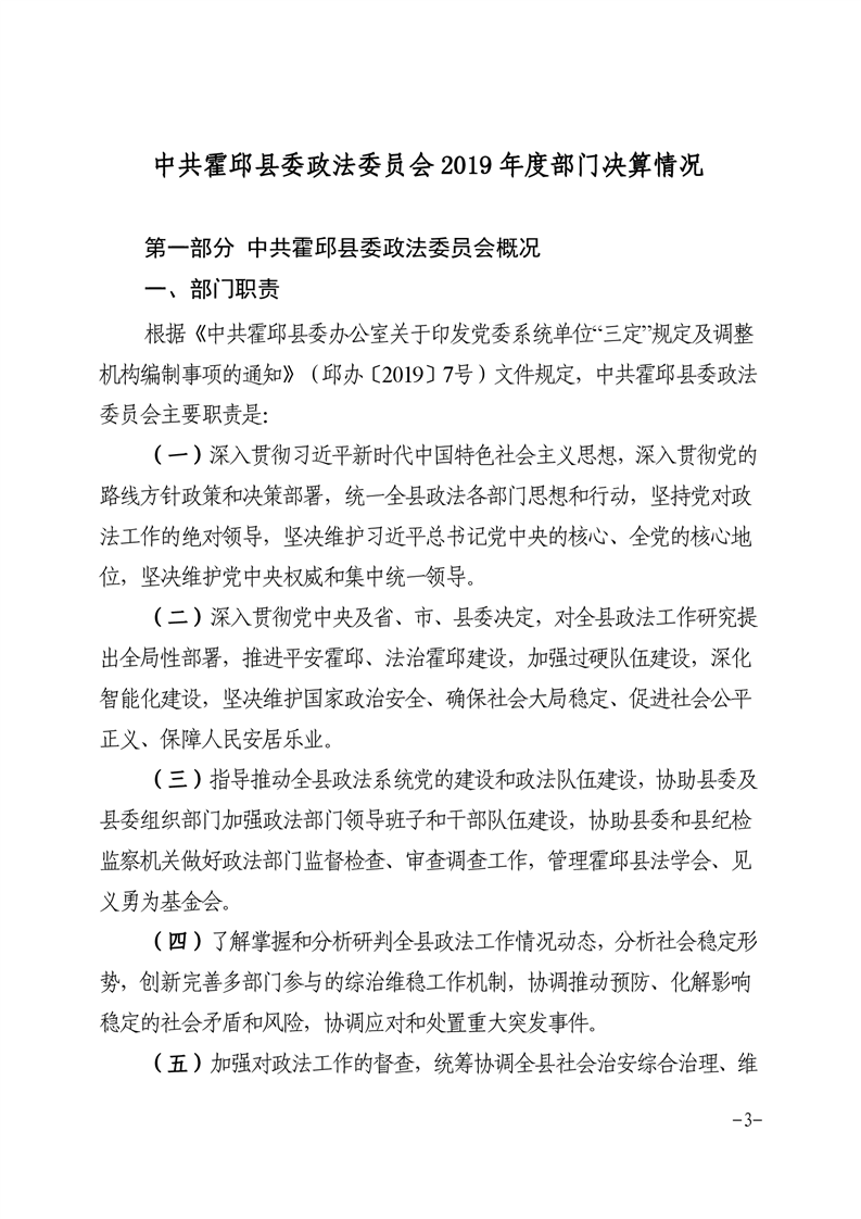 霍邱县政法委2019年度部门决算公开