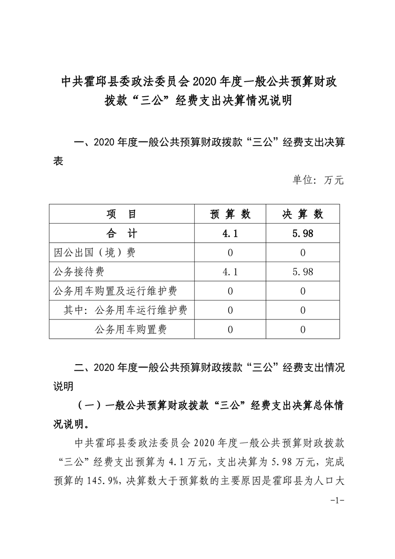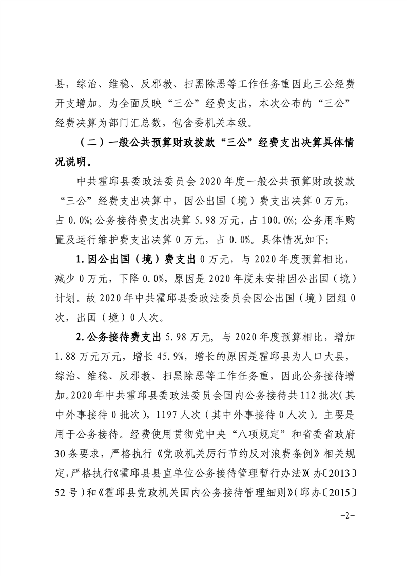 中共霍邱县委政法委员会2020年度“三公”经费决算公开