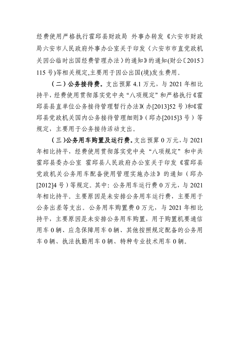中共霍邱县委政法委员会2022年一般公共预算安排“三公”经费情况
