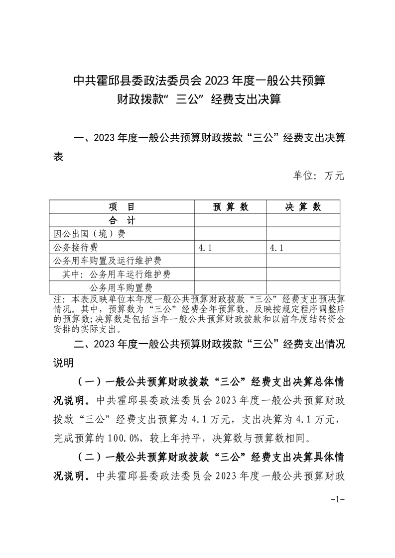 中共霍邱县委政法委员会2023年度一般公共预算财政拨款“三公”经费支出决算情况