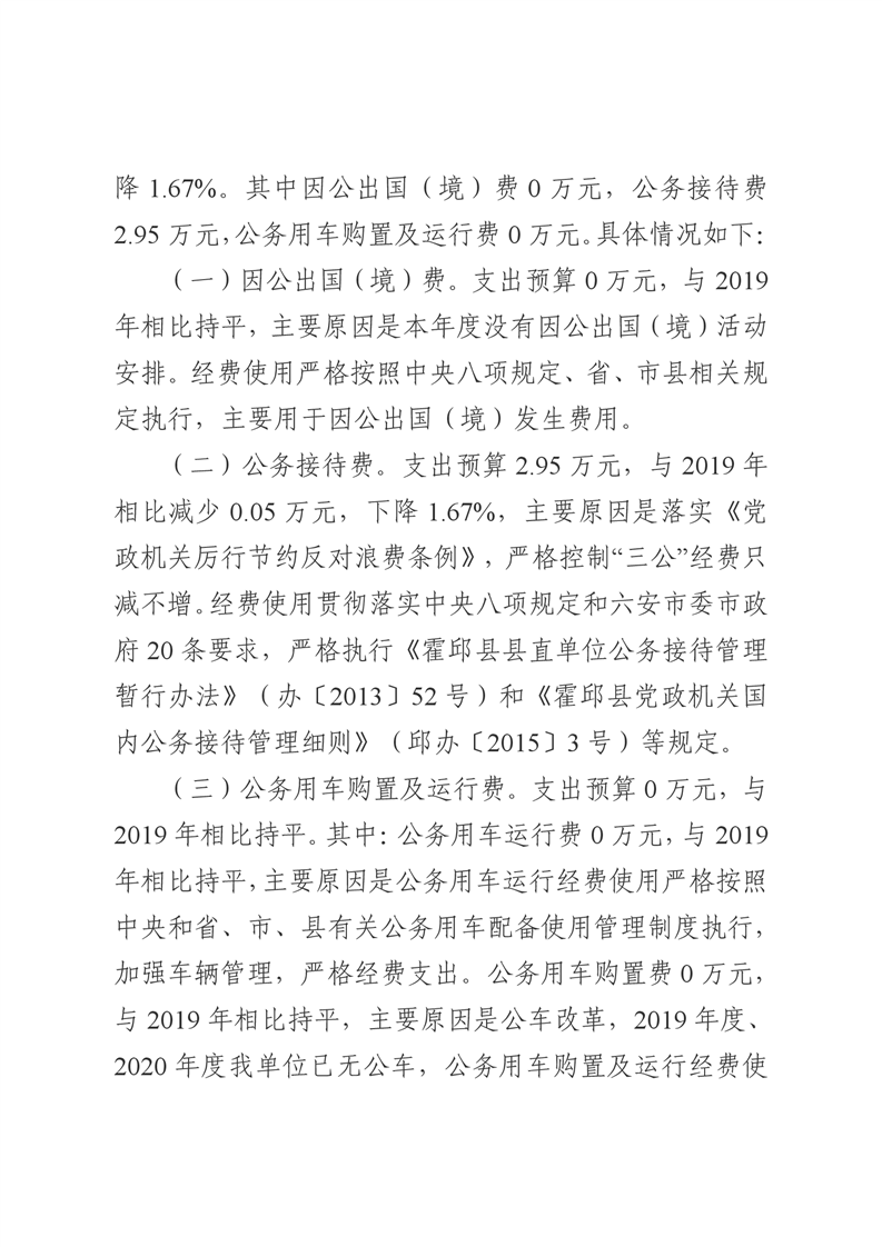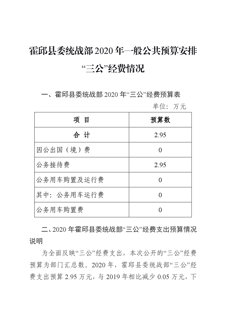 霍邱县委统战部2020年一般公共预算安排“三公”经费情况