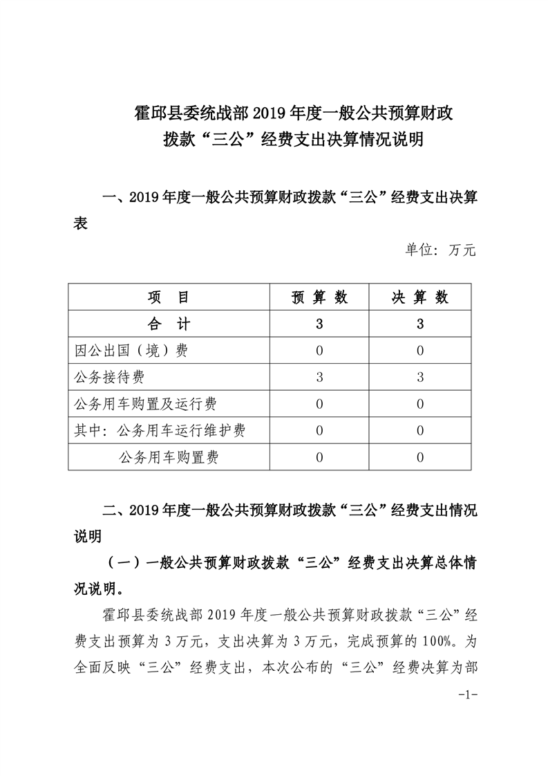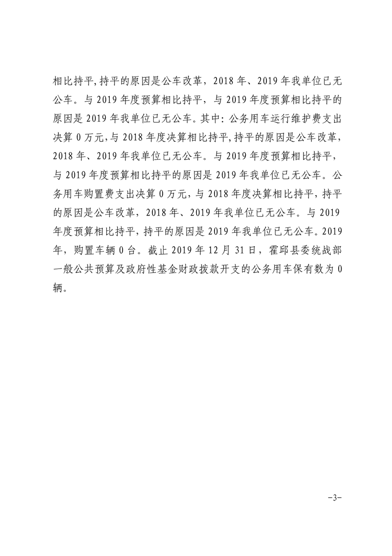 霍邱县委统战部2019年度一般公共预算财政拨款“三公”经费支出决算