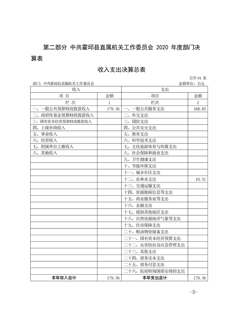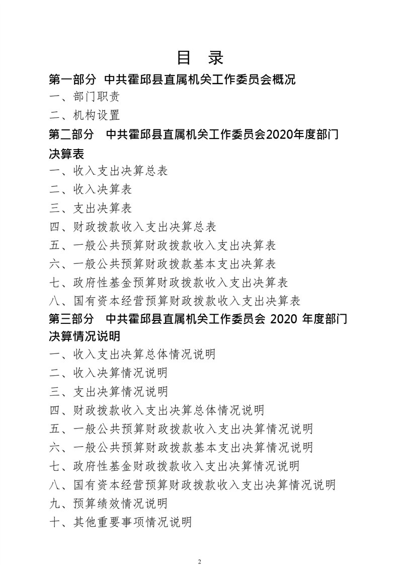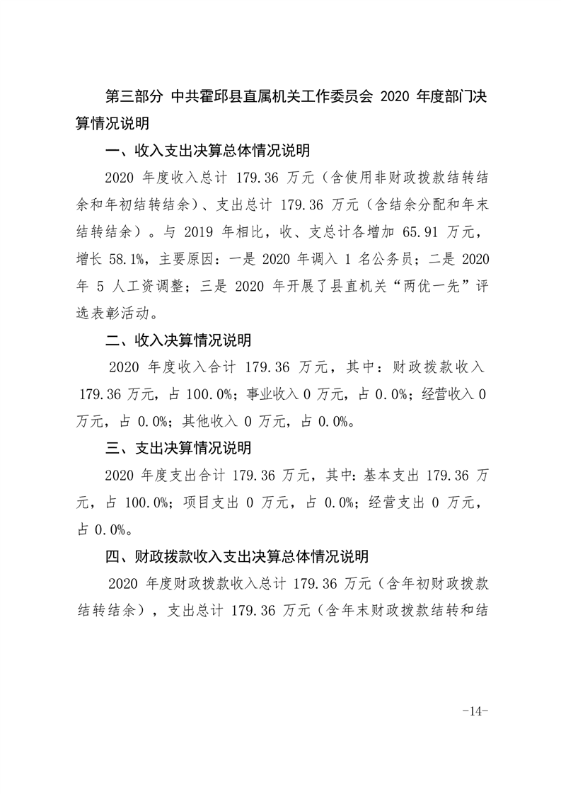 中共霍邱县直属机关工作委员会2020年度部门决算
