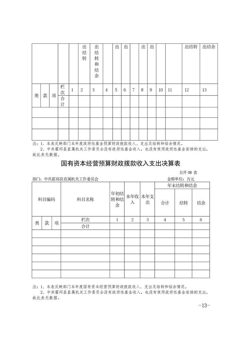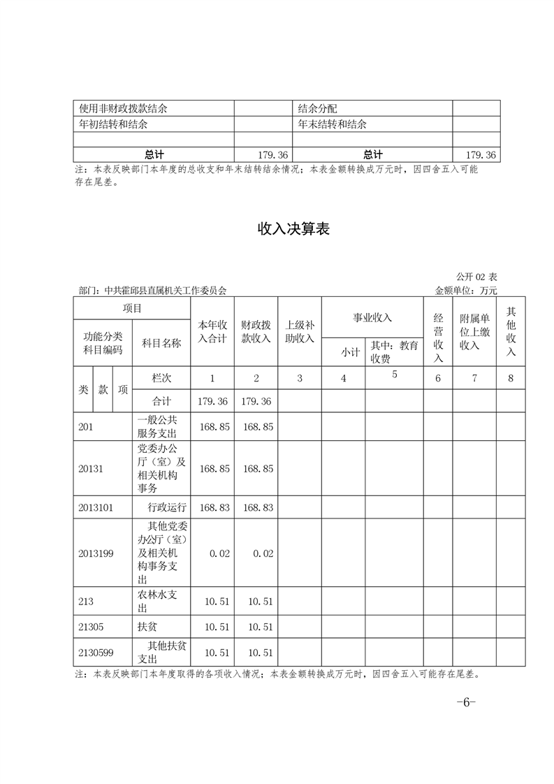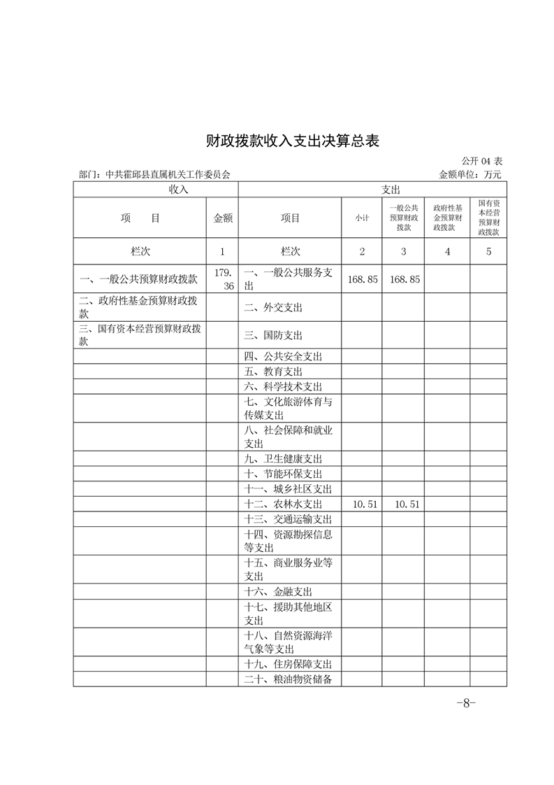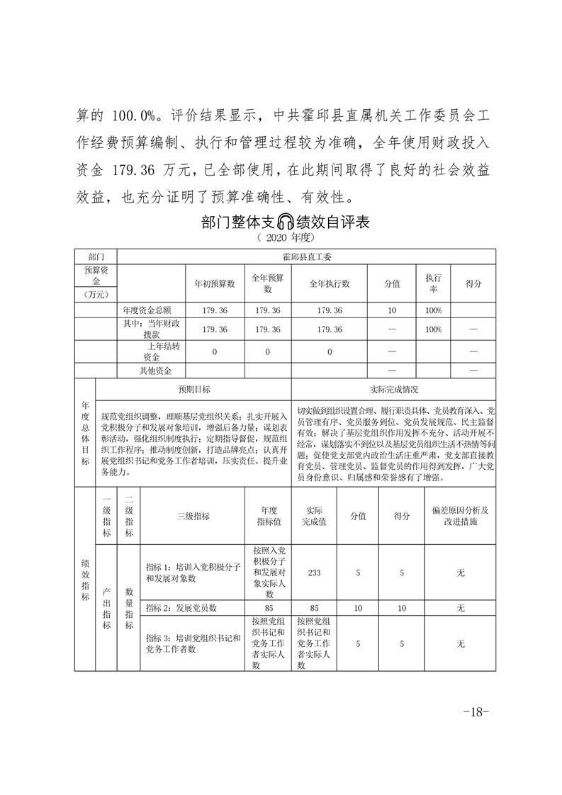 中共霍邱县直属机关工作委员会2020年度部门决算
