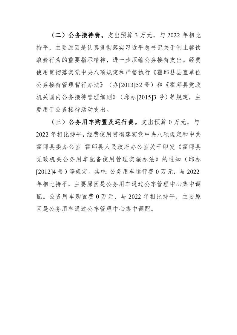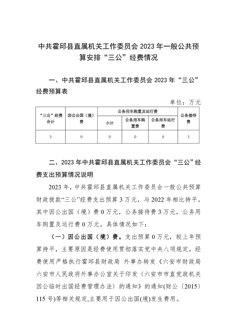 中共霍邱县直属机关工作委员会2023年部门单位一般公共预算安排“三公”经费情况