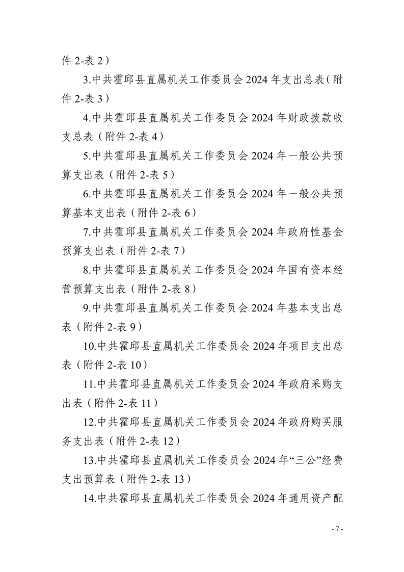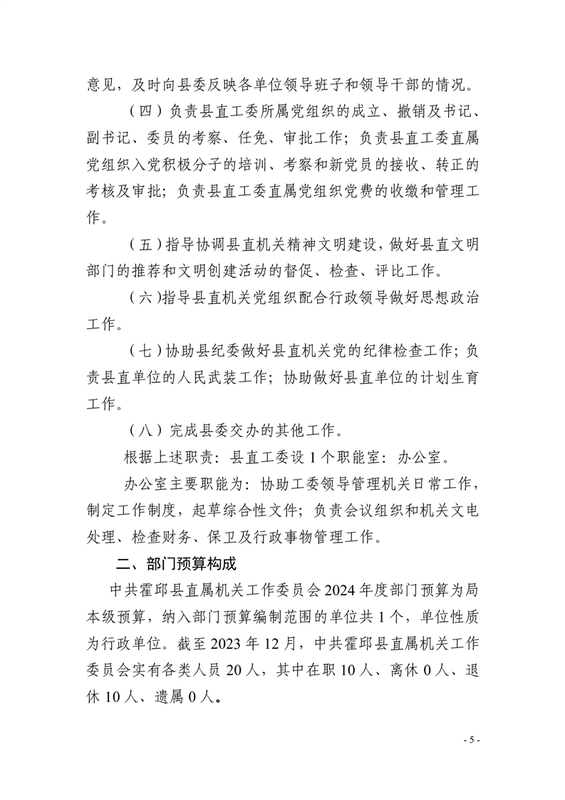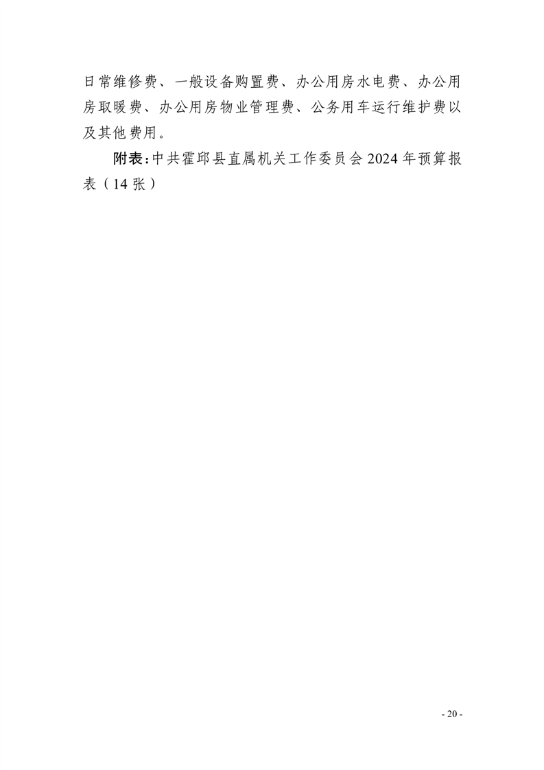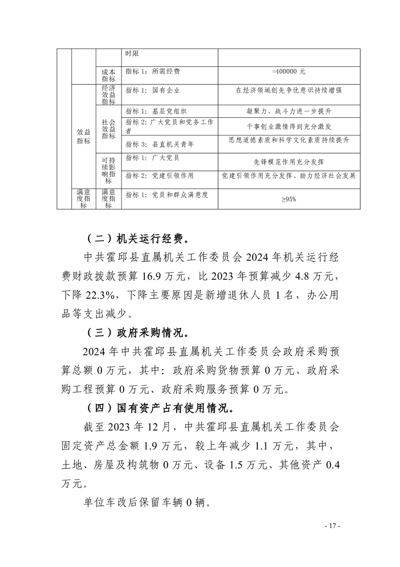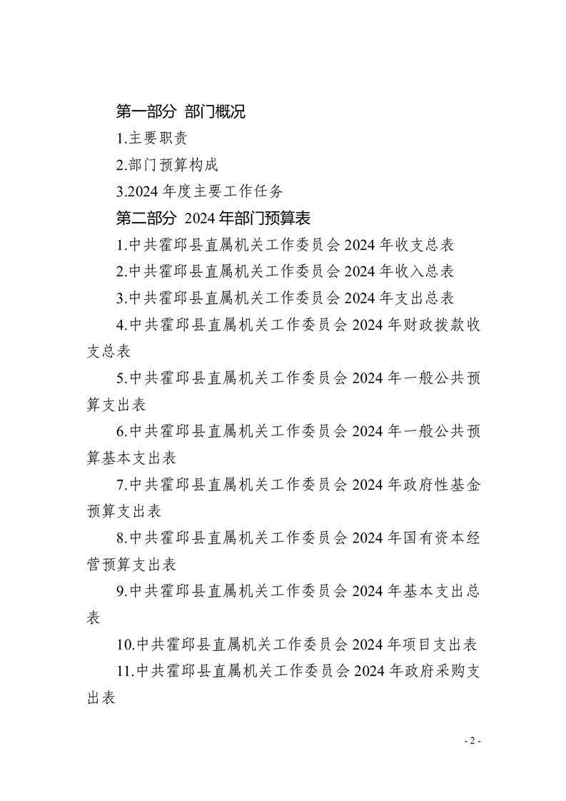 中共霍邱县直属机关工作委员会2024年部门预算公开