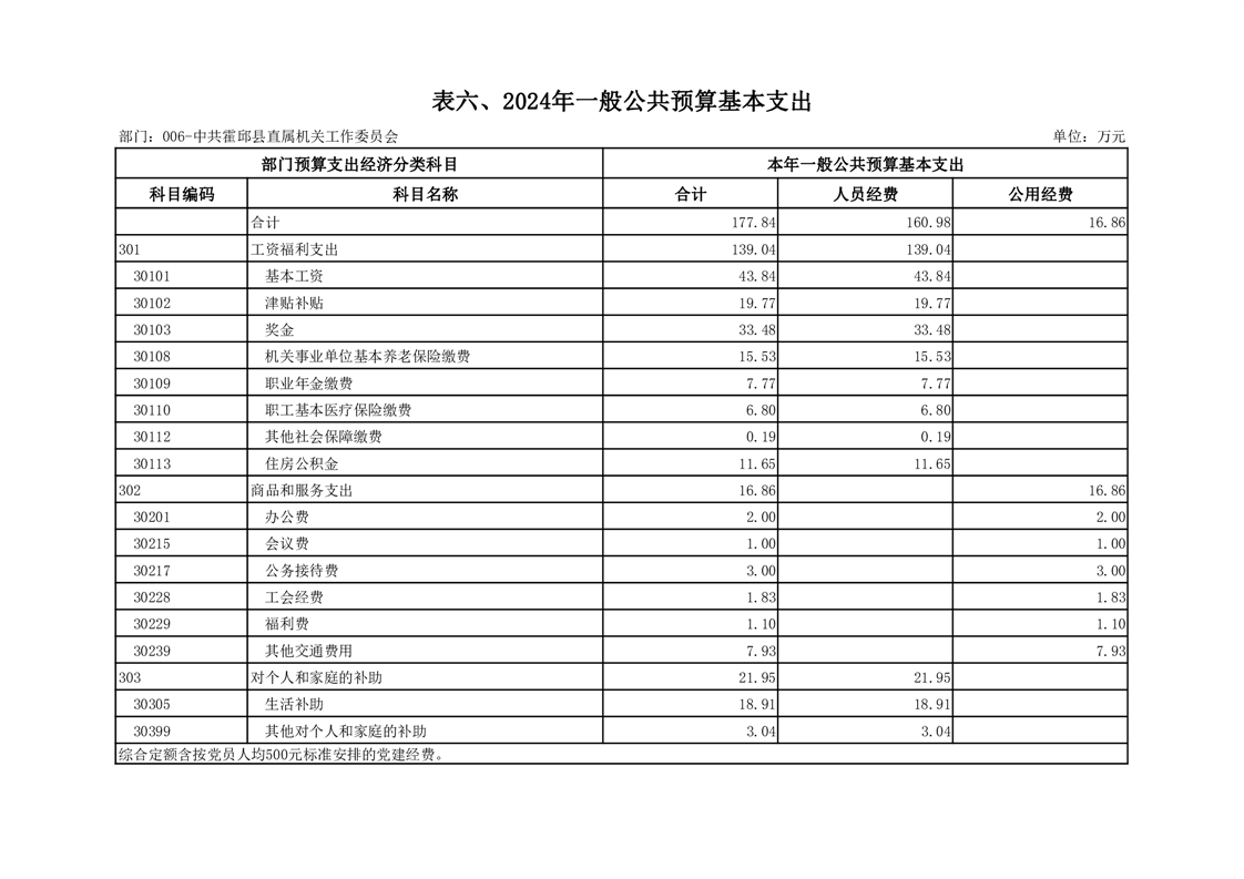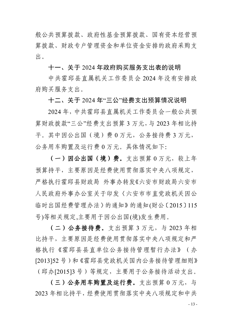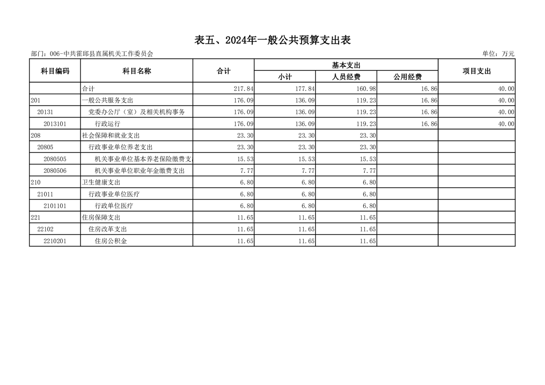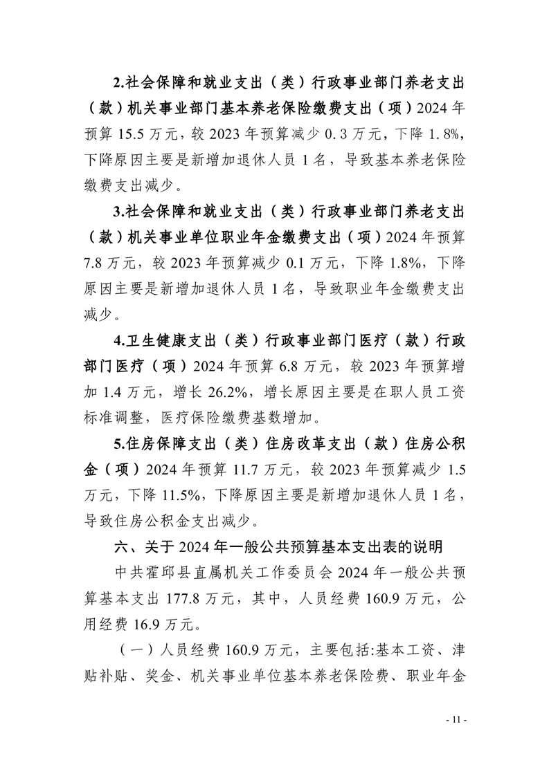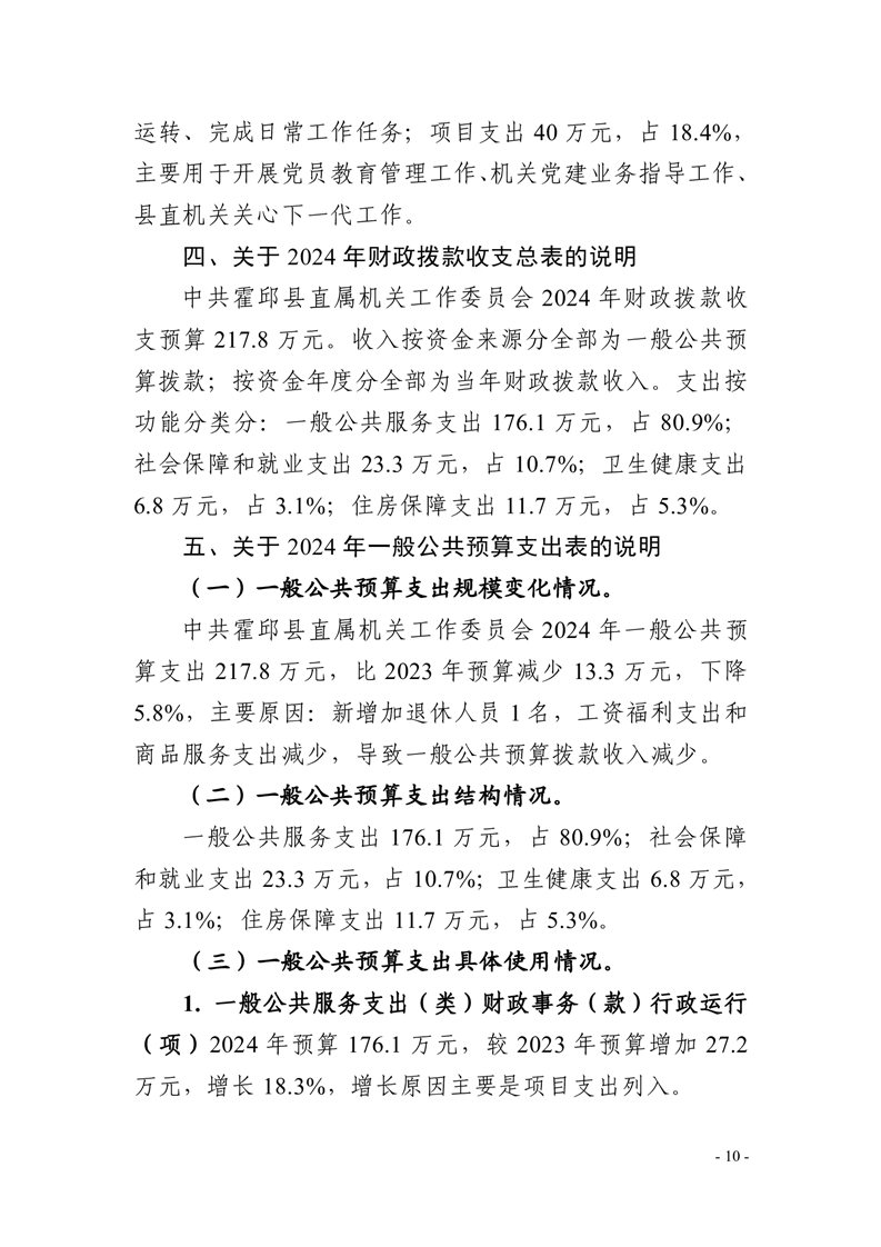 中共霍邱县直属机关工作委员会2024年部门预算公开