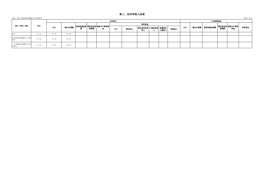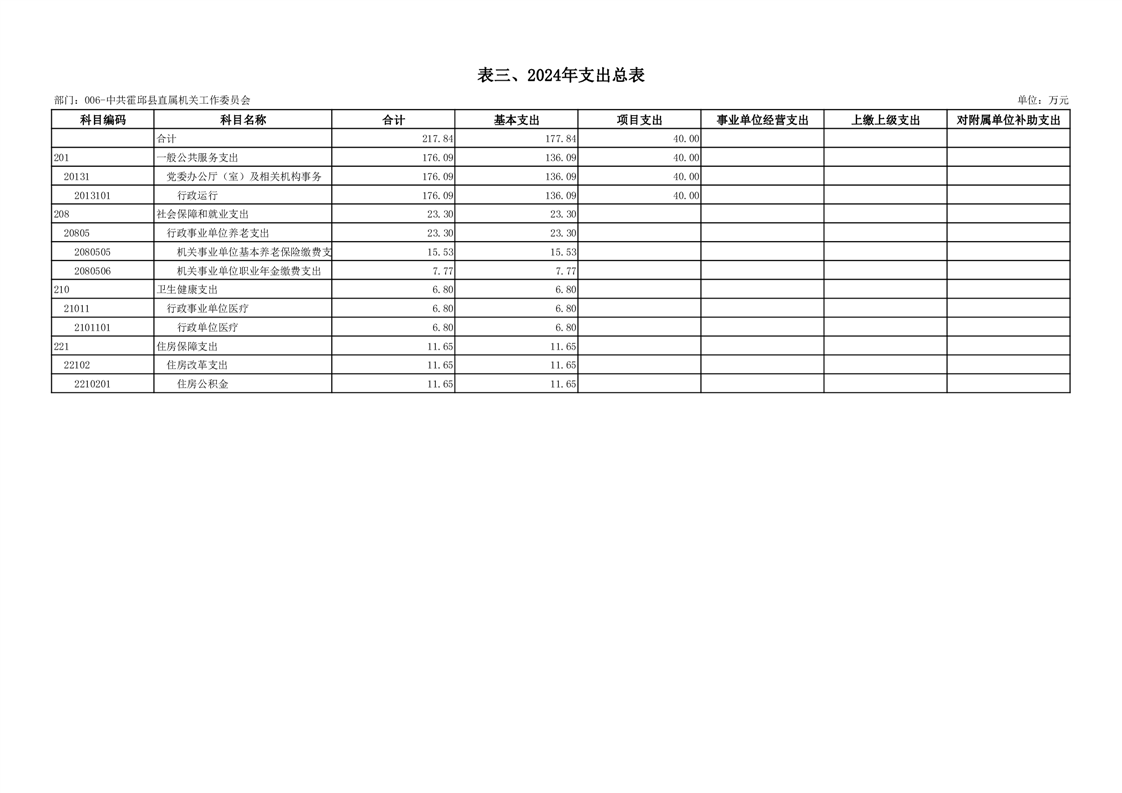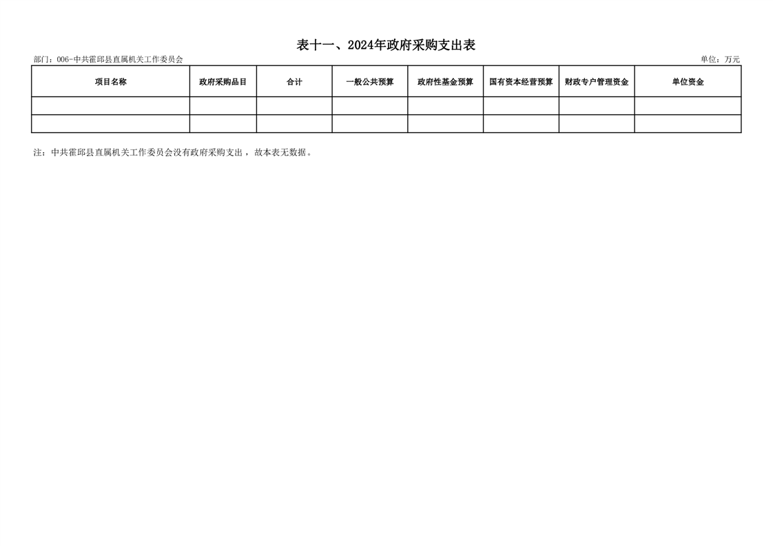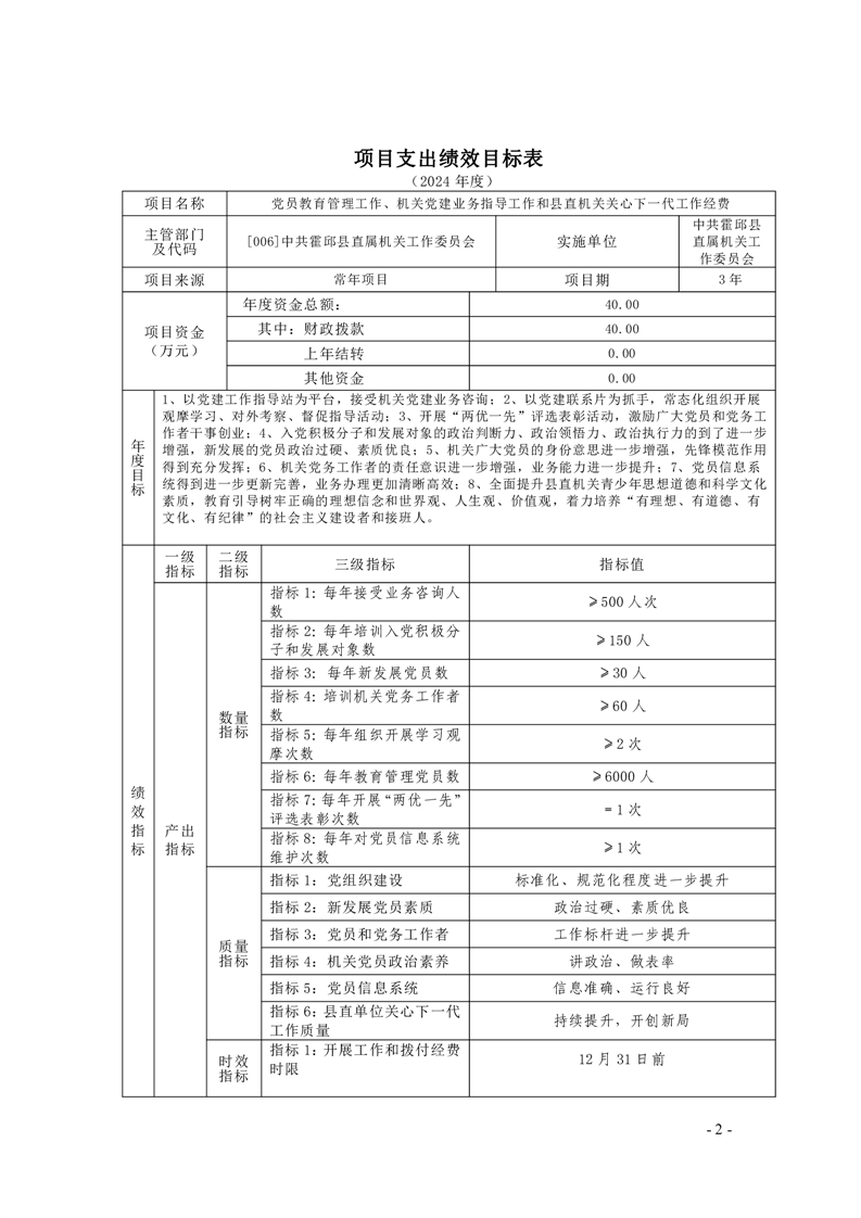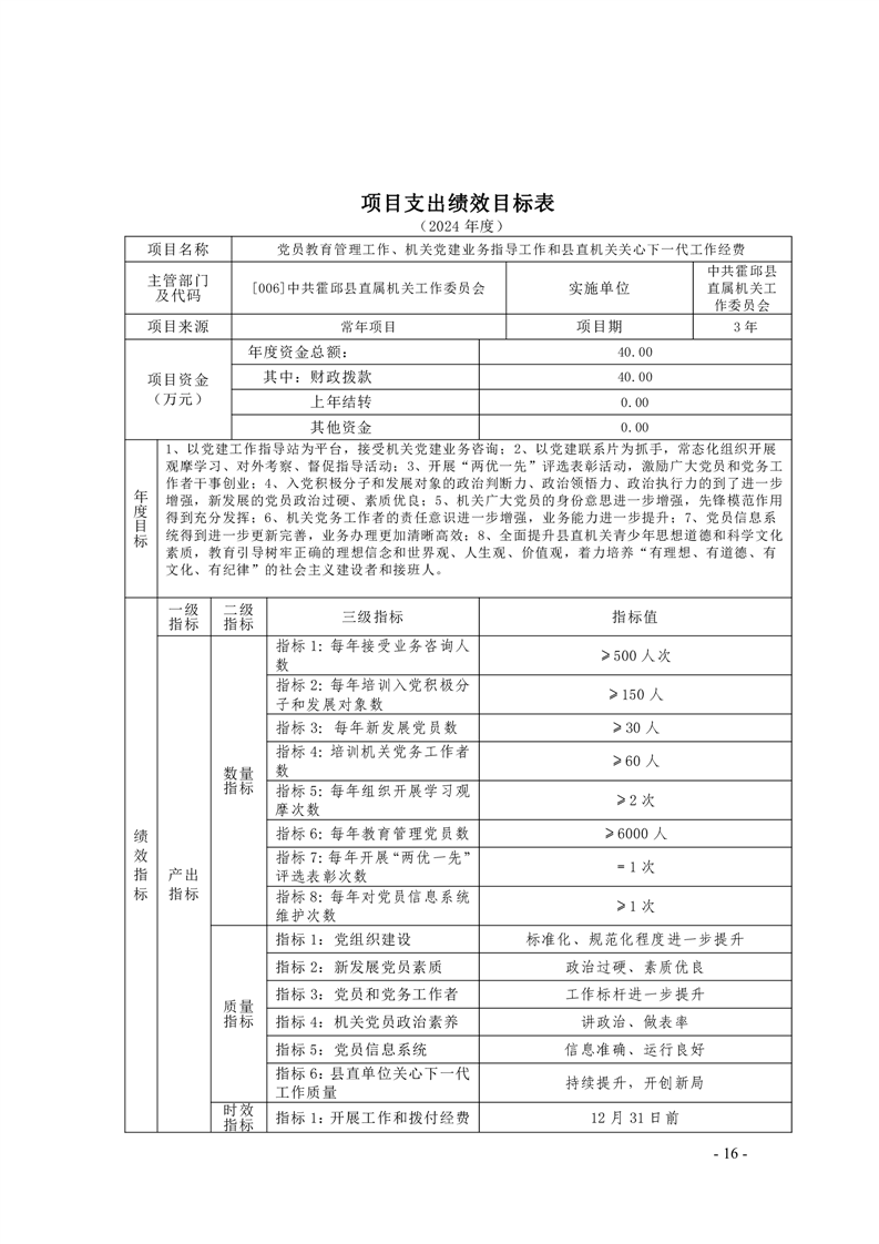 中共霍邱县直属机关工作委员会2024年部门预算公开