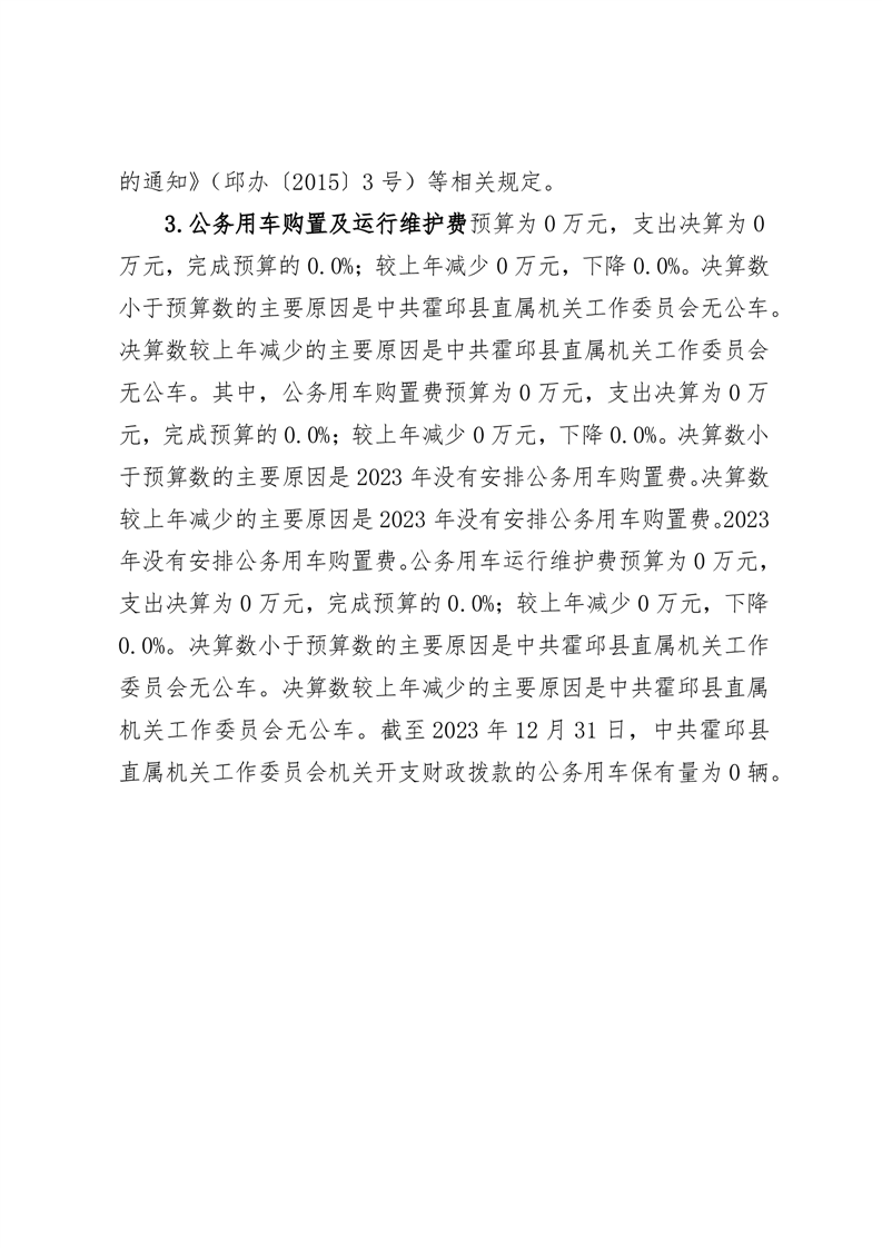 中共霍邱县直属机关工作委员会2023年度一般公共预算财政拨款“三公”经费支出决算