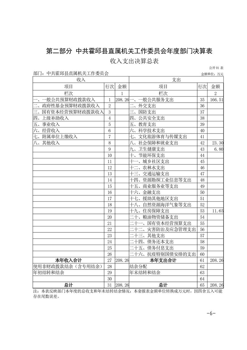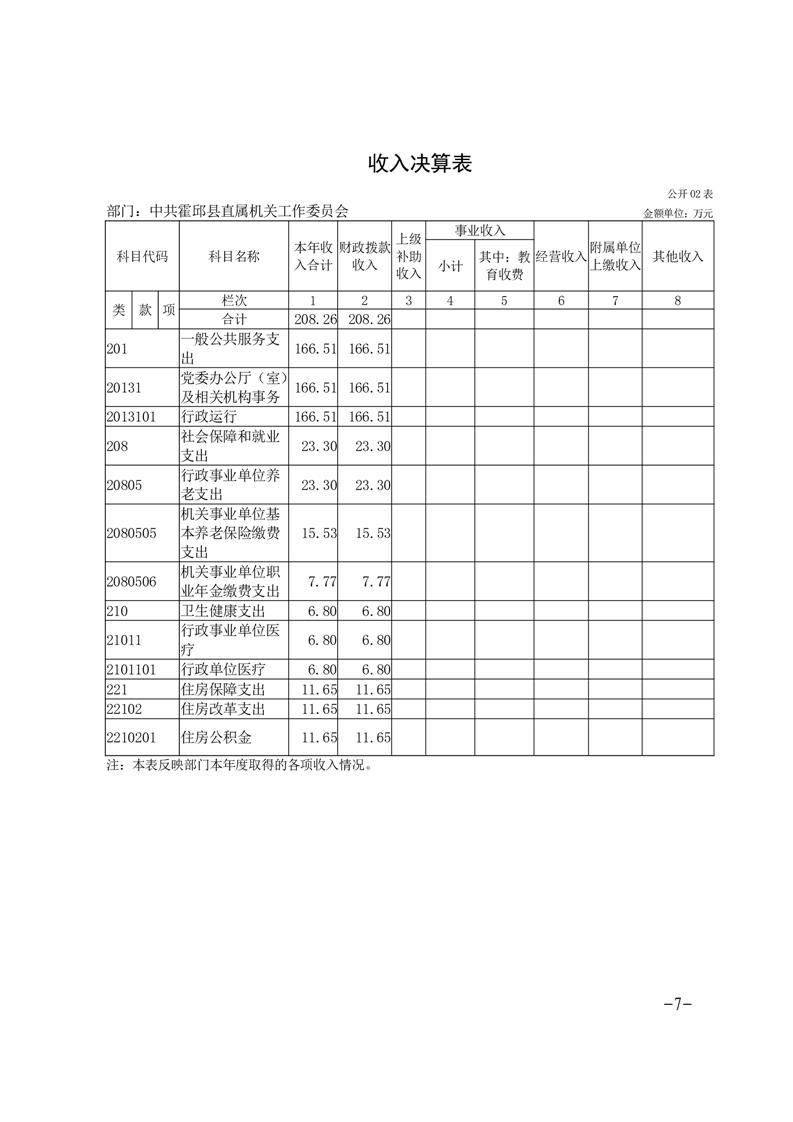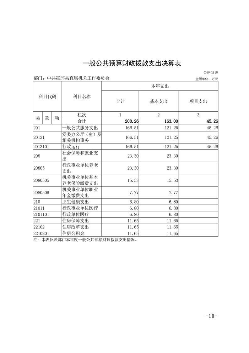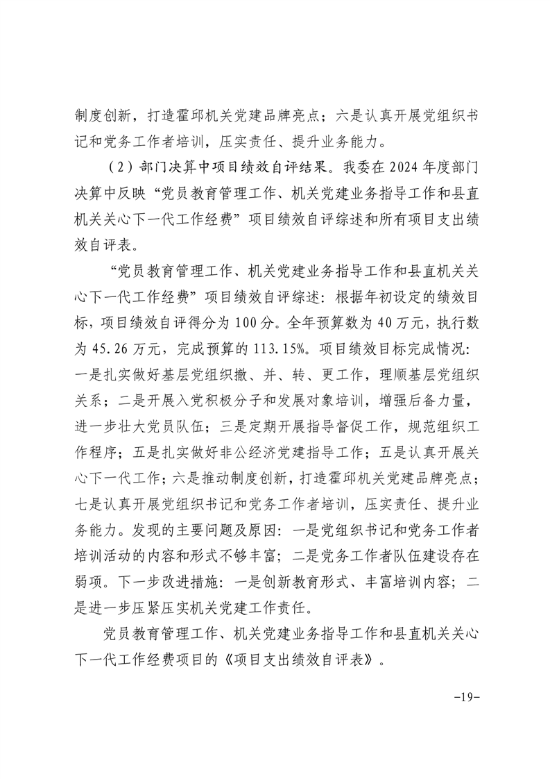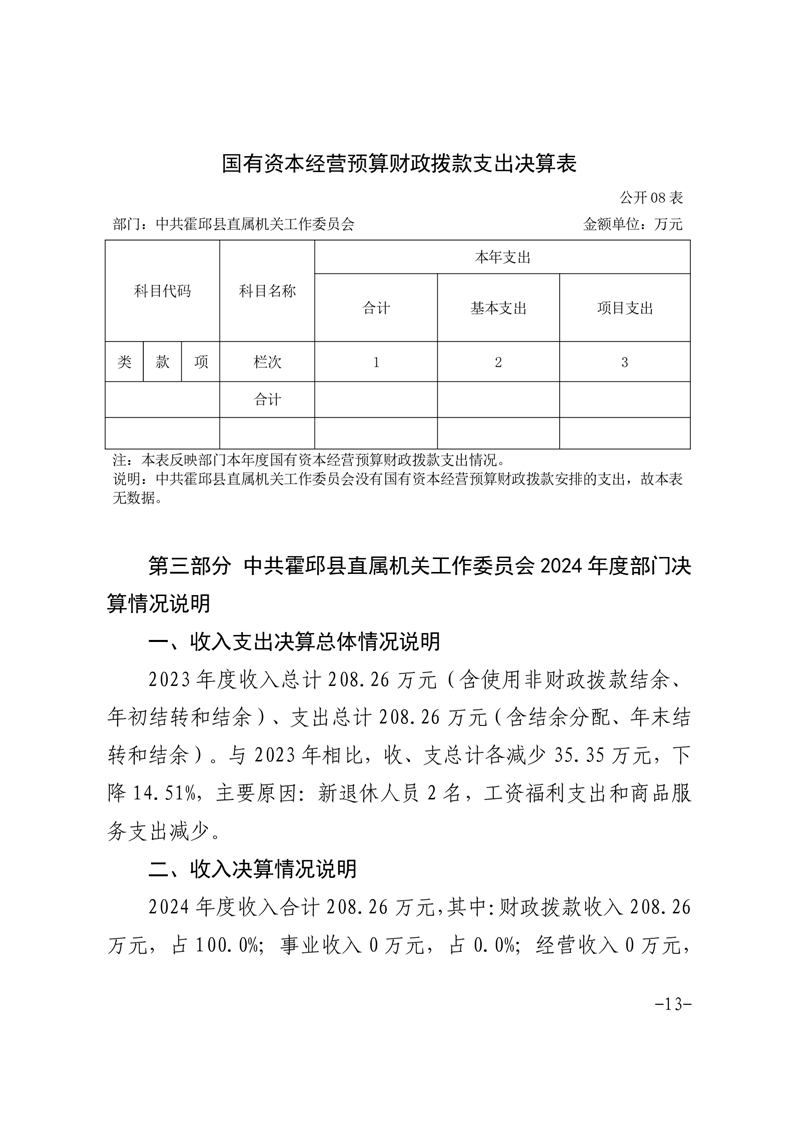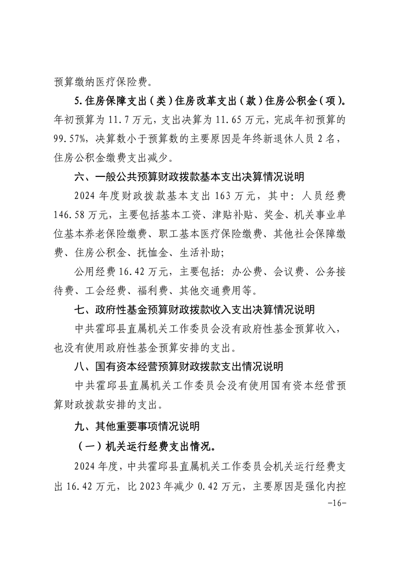 中共霍邱县直属机关工作委员会2024年度部门决算