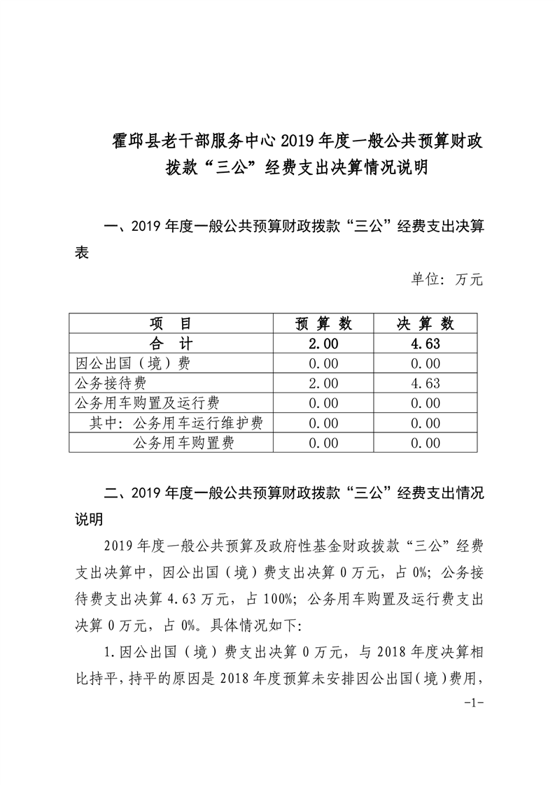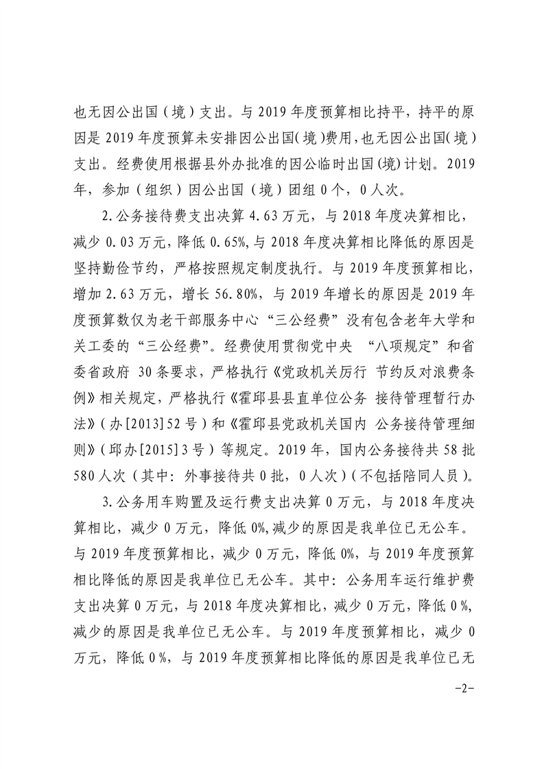 霍邱县老干部服务中心2019年度“三公”经费决算公开