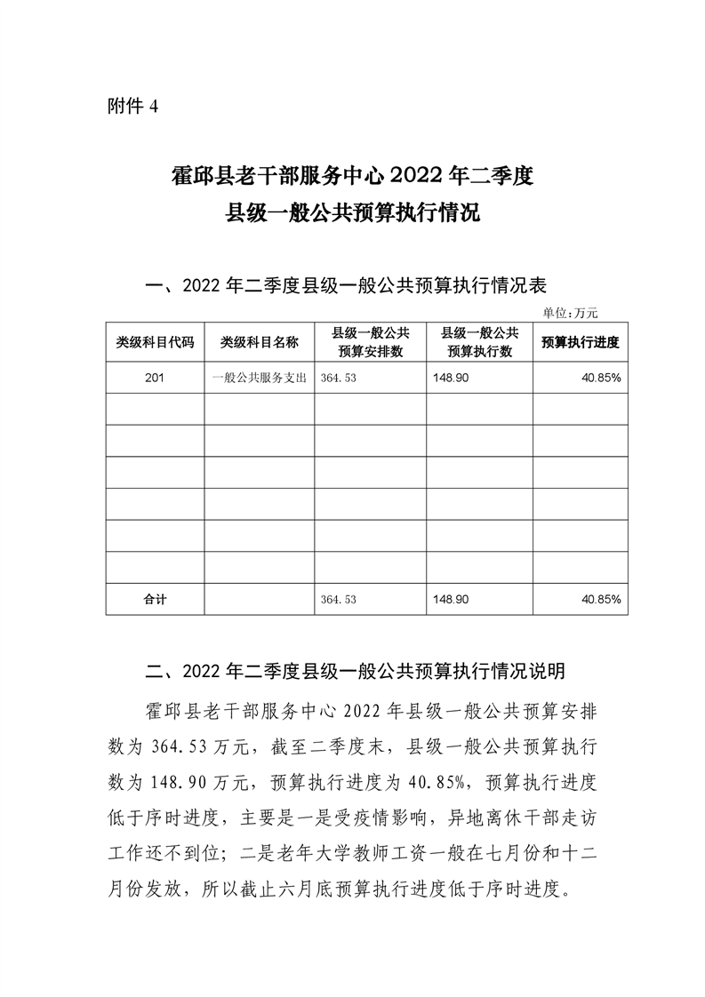 霍邱县老干部服务中心2022年二季度县级一般公共预算执行情况公开