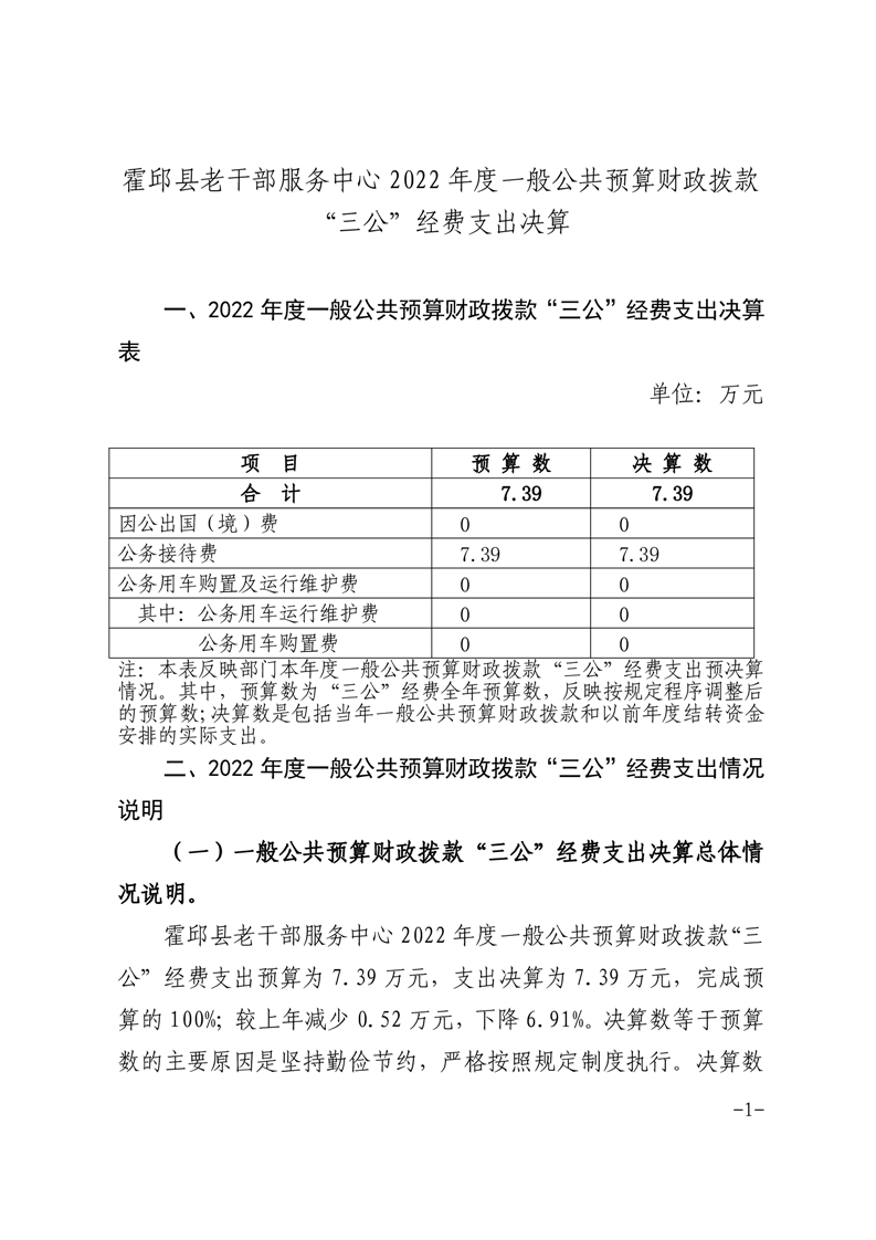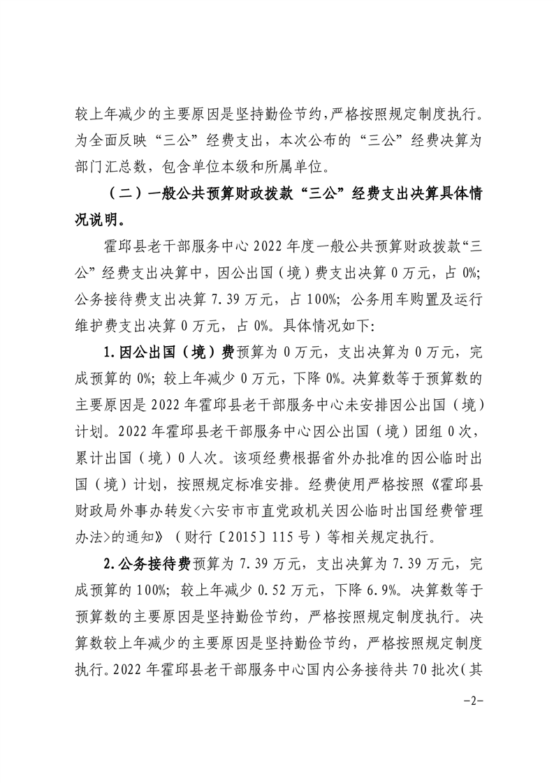 霍邱县老干部服务中心2022年度一般公共预算财政拨款“三公”经费支出决算公开