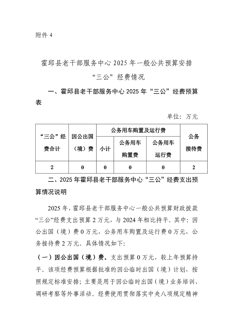 霍邱县老干部服务中心2025年部门一般公共预算安排“三公”经费情况公开