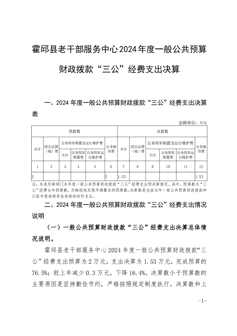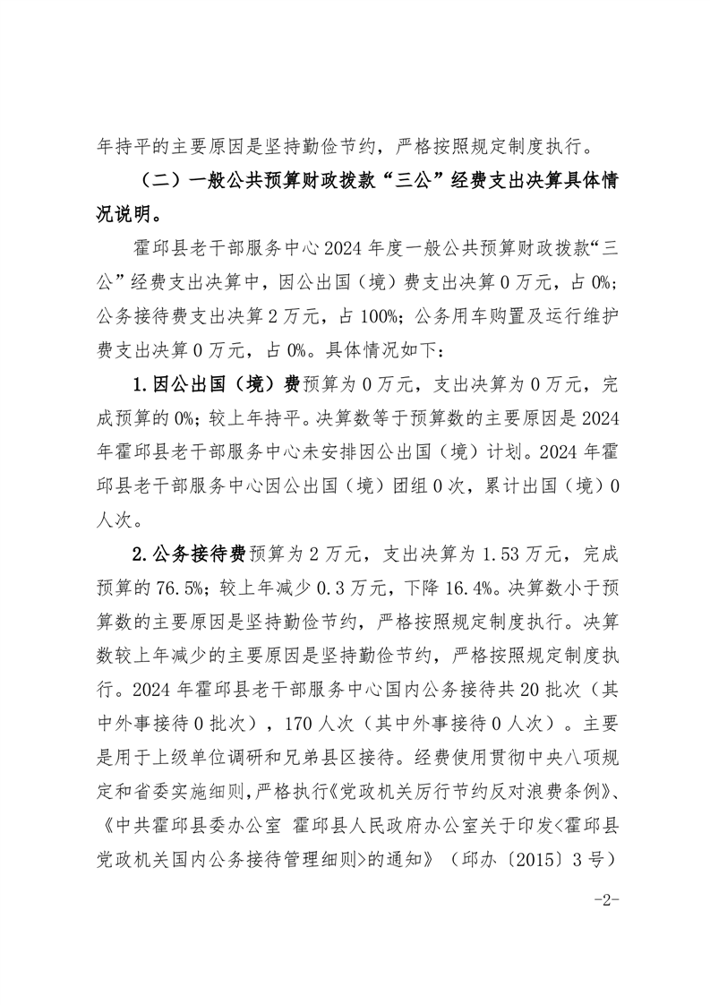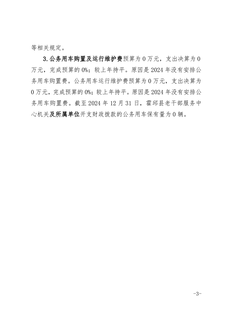 霍邱县老干部服务中心2024年度一般公共预算财政拨款“三公”经费支出决算