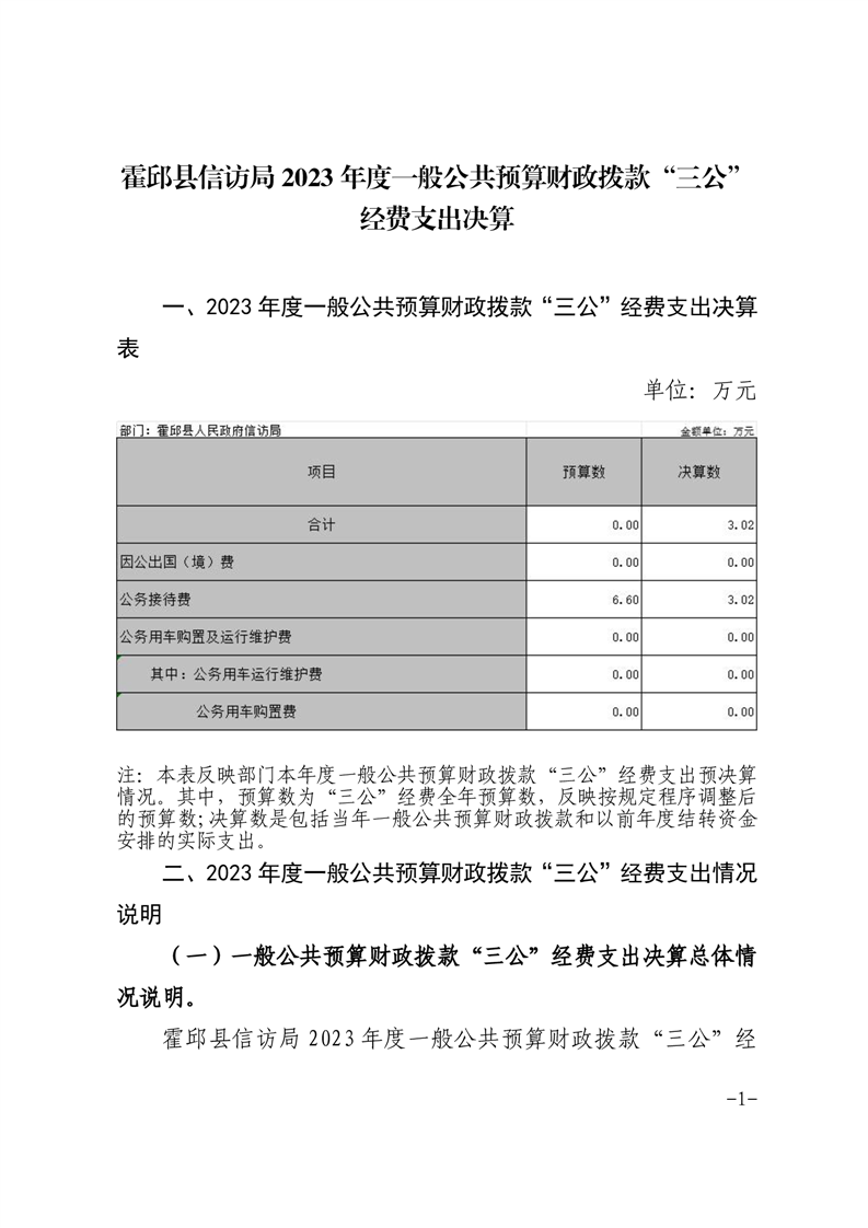 霍邱县信访局2023年度一般公共预算财政拨款“三公”经费支出决算
