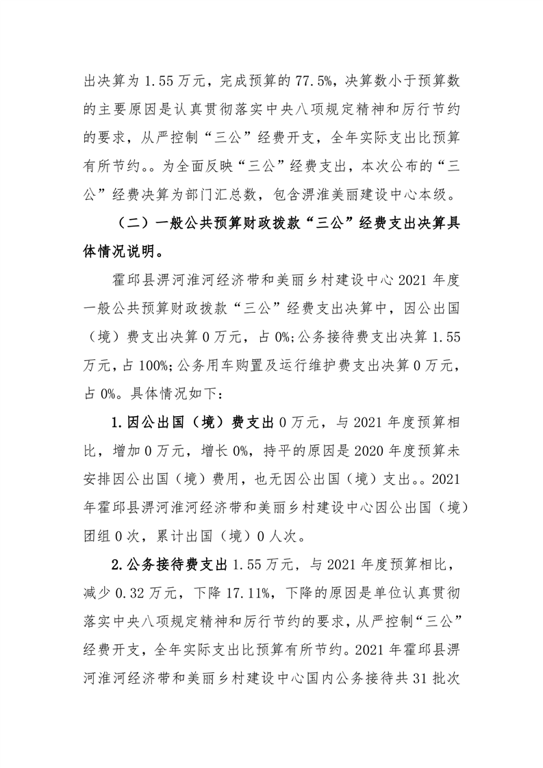 霍邱县淠河淮河经济带和美丽乡村建设中心2021年度一般公共预算财政拨款“三公”经费支出决算