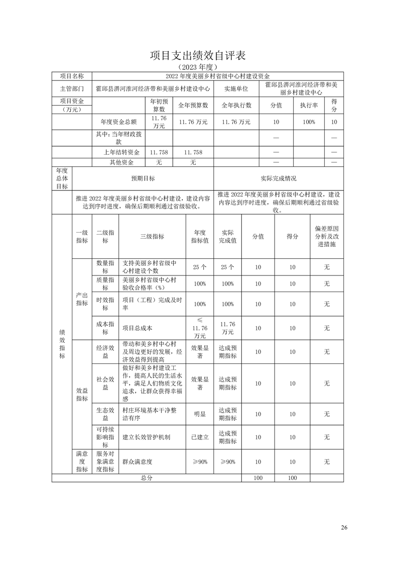 霍邱县淠河淮河经济带和美丽乡村建设中心2023年度部门决算公开