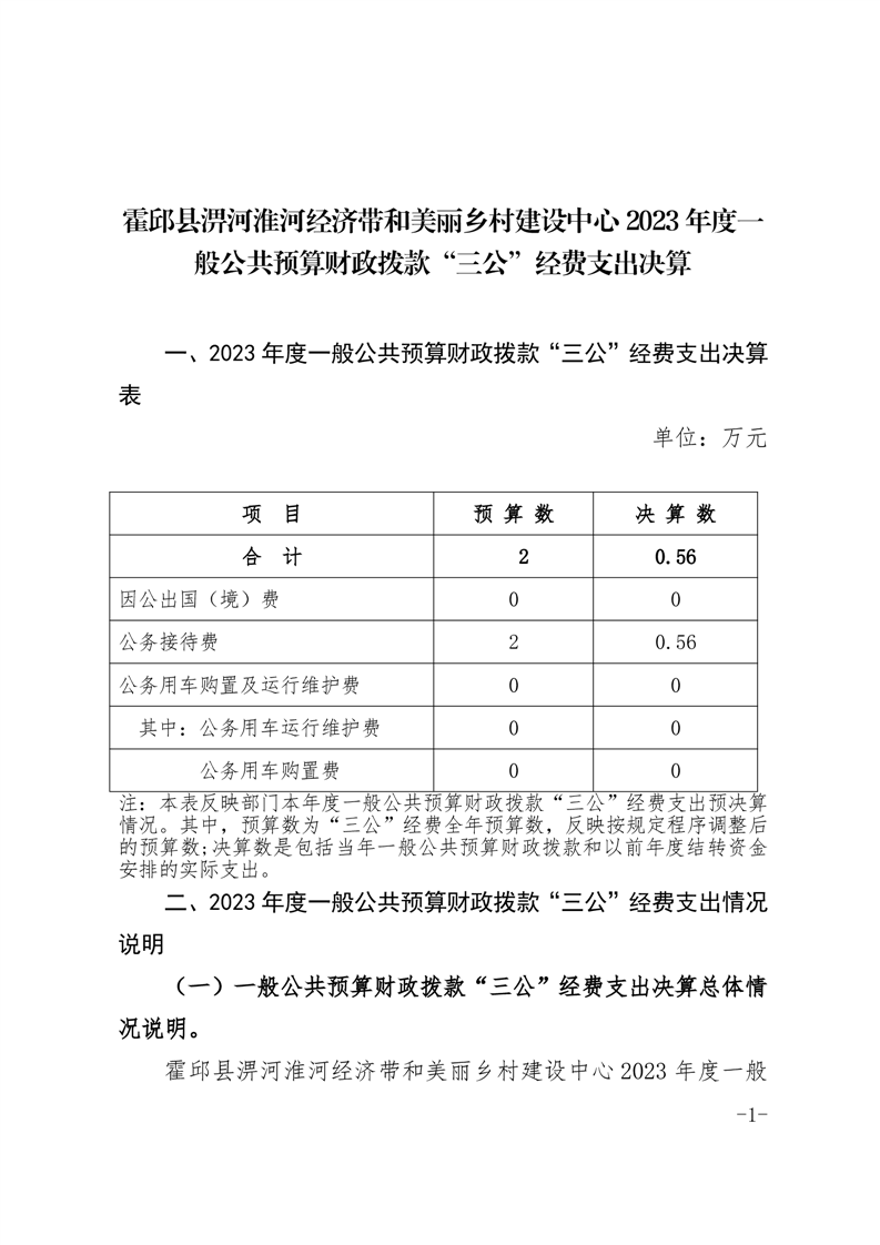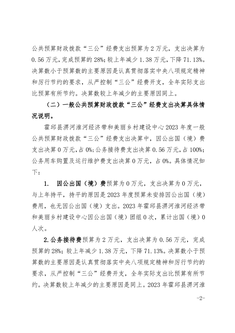 霍邱县淠河淮河经济带和美丽乡村建设中心2023年度一般公共预算财政拨款“三公”经费支出决算公开