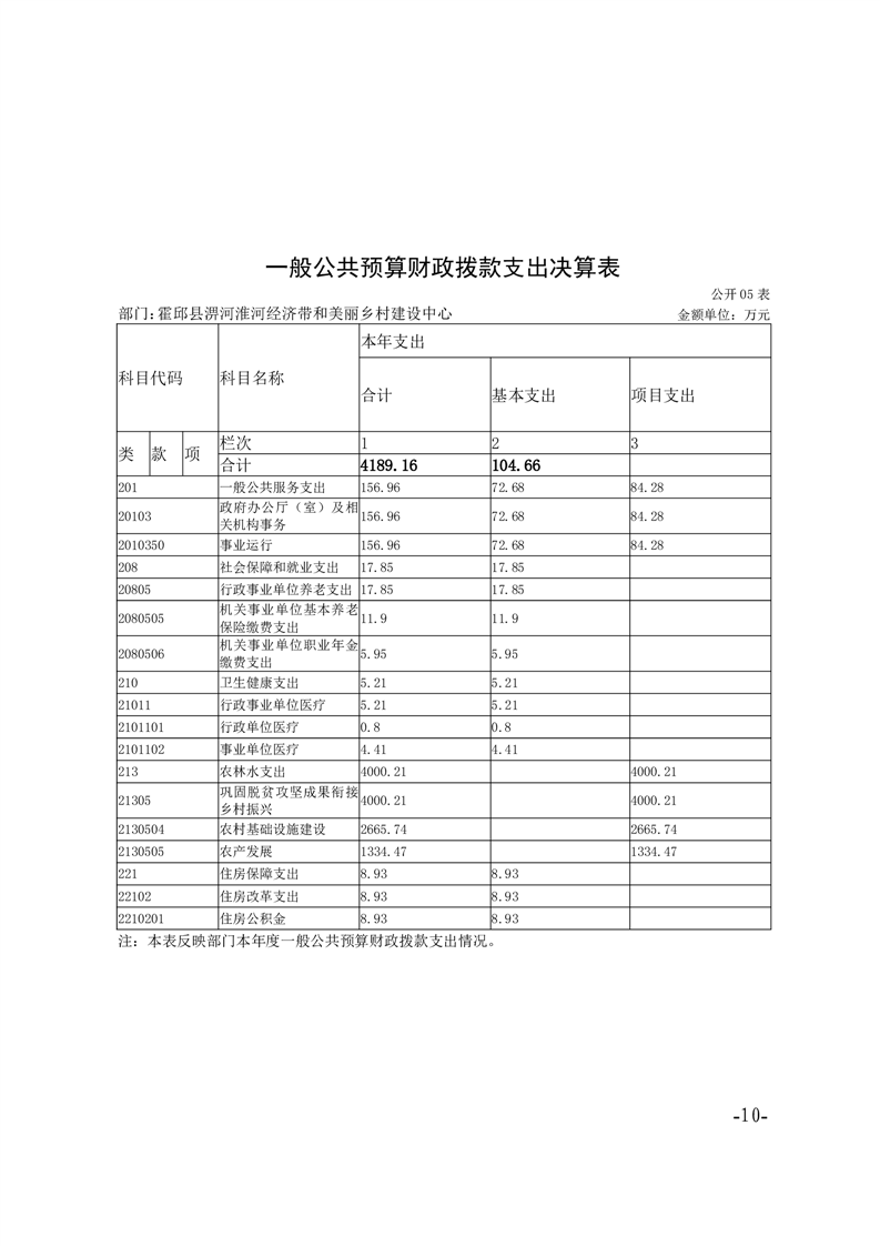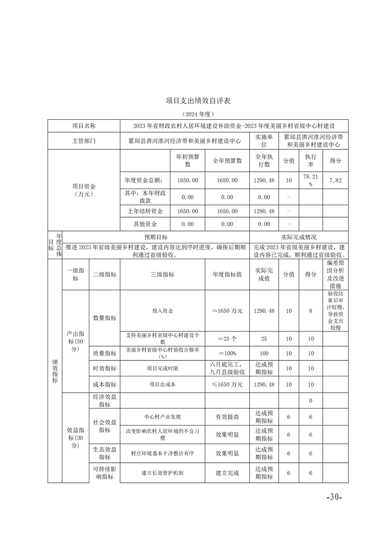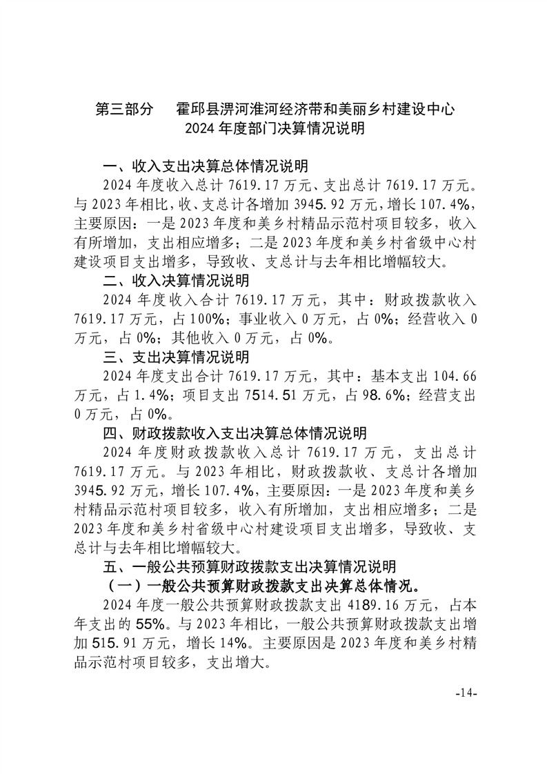 霍邱县淠河淮河经济带和美丽乡村建设中心2024年度部门决算公开