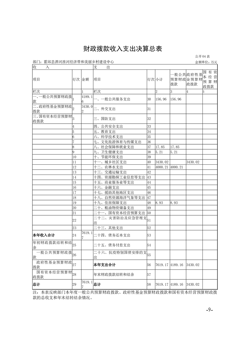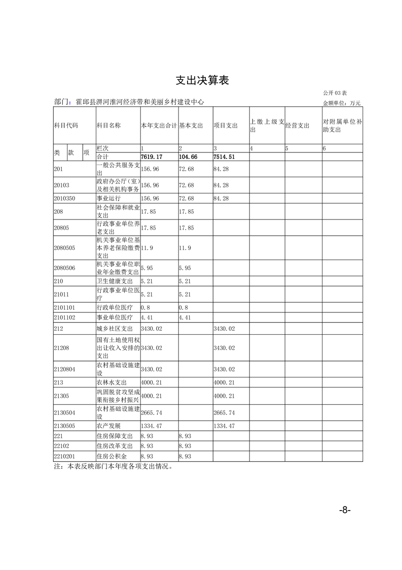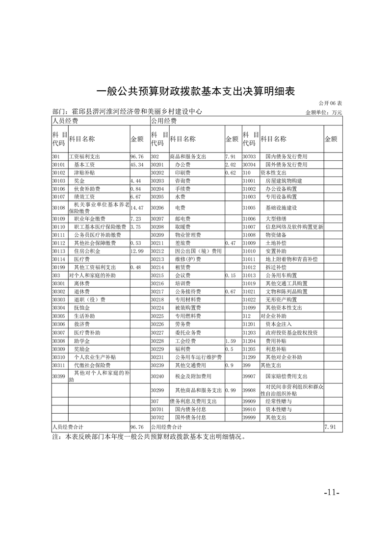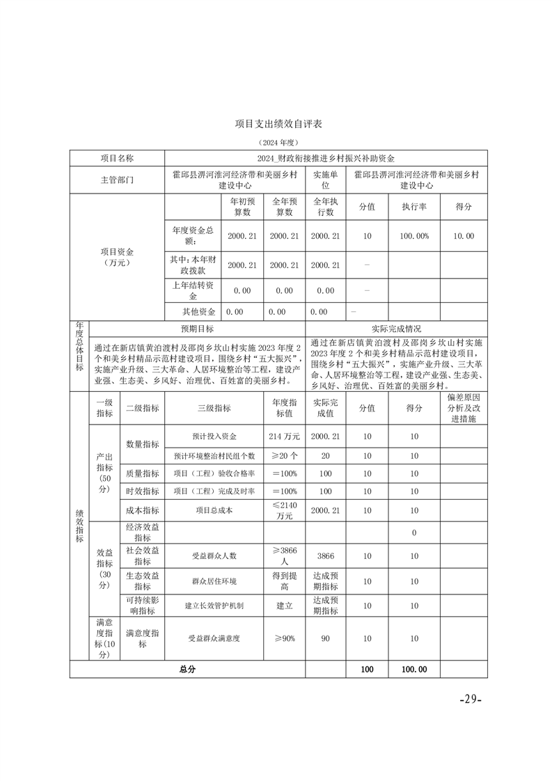 霍邱县淠河淮河经济带和美丽乡村建设中心2024年度部门决算公开