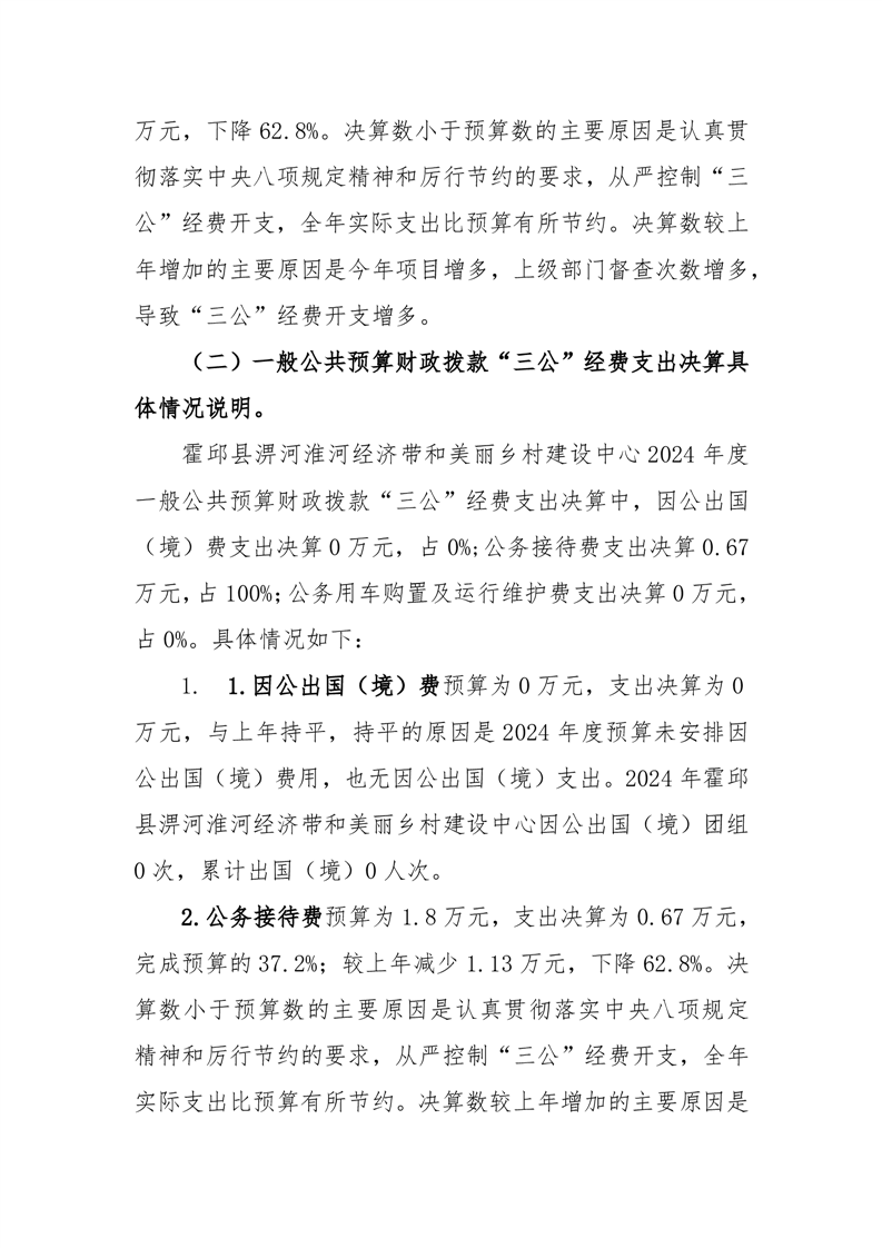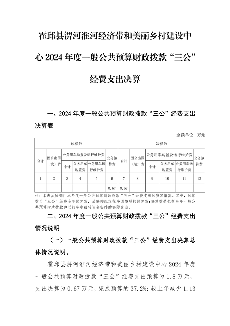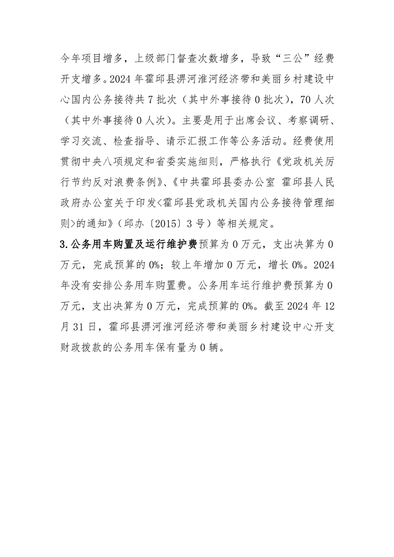 霍邱县淠河淮河经济带和美丽乡村建设中心2024年度一般公共预算财政拨款“三公”经费支出决算公开