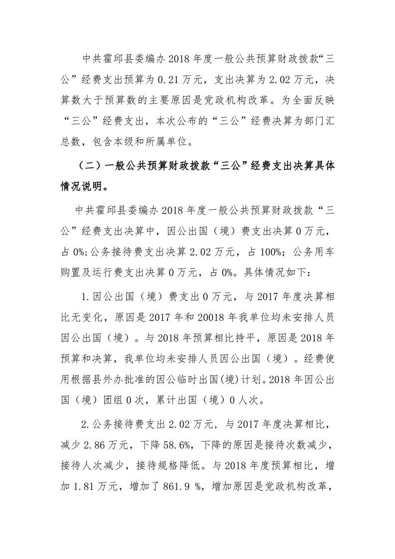 中共霍邱县委编办2018年度一般公共预算财政拨款“三公”经费支出决算情况说明