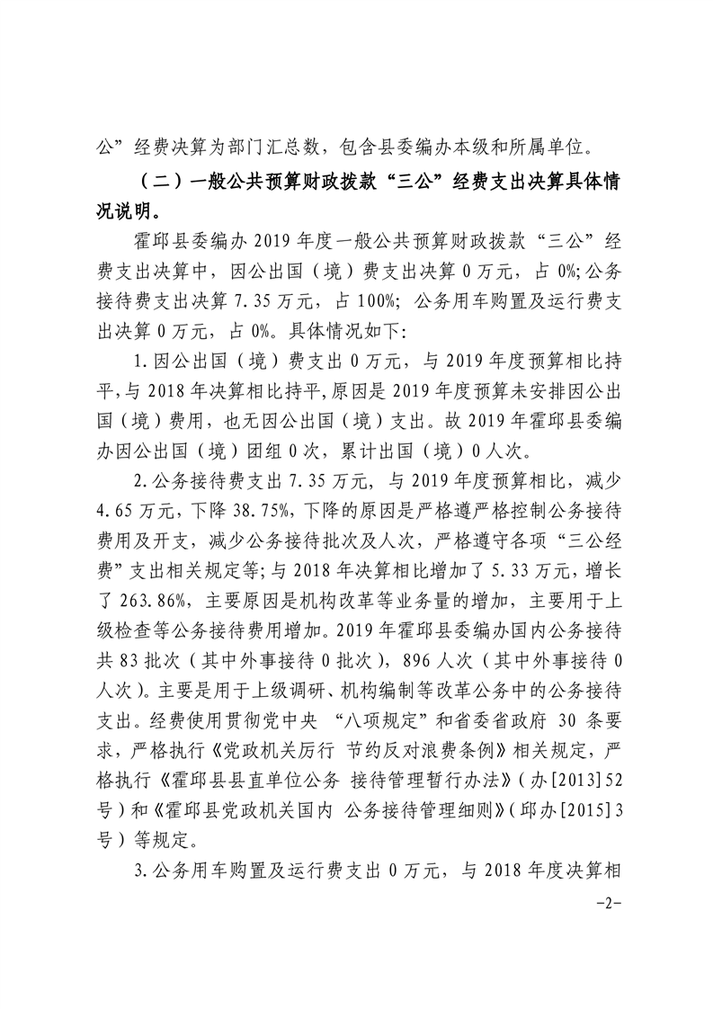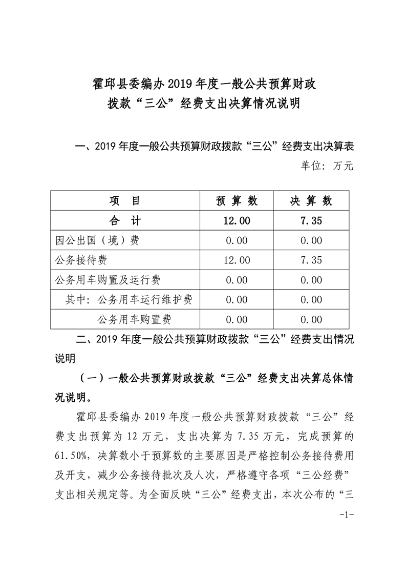 中共霍邱县委编办2019年度一般公共预算财政拨款“三公”经费支出决算情况说明