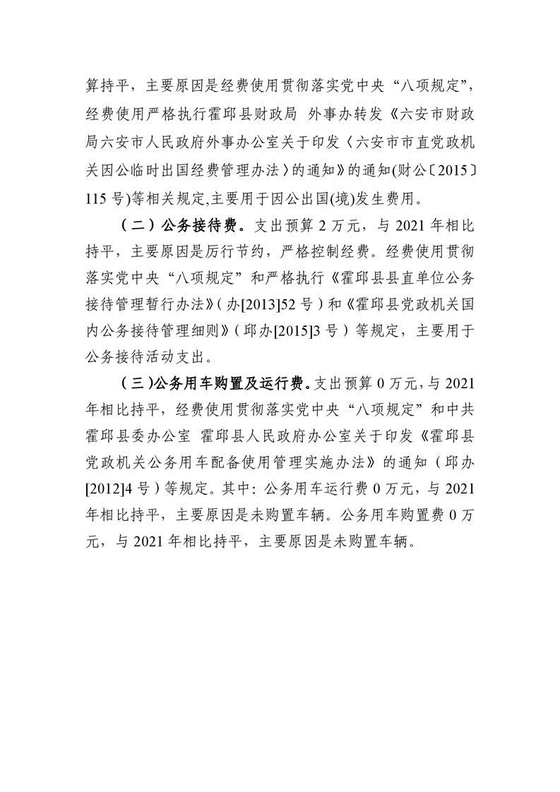 中共霍邱县委机构编制委员会办公室部门2022年一般公共预算安排“三公”经费情况