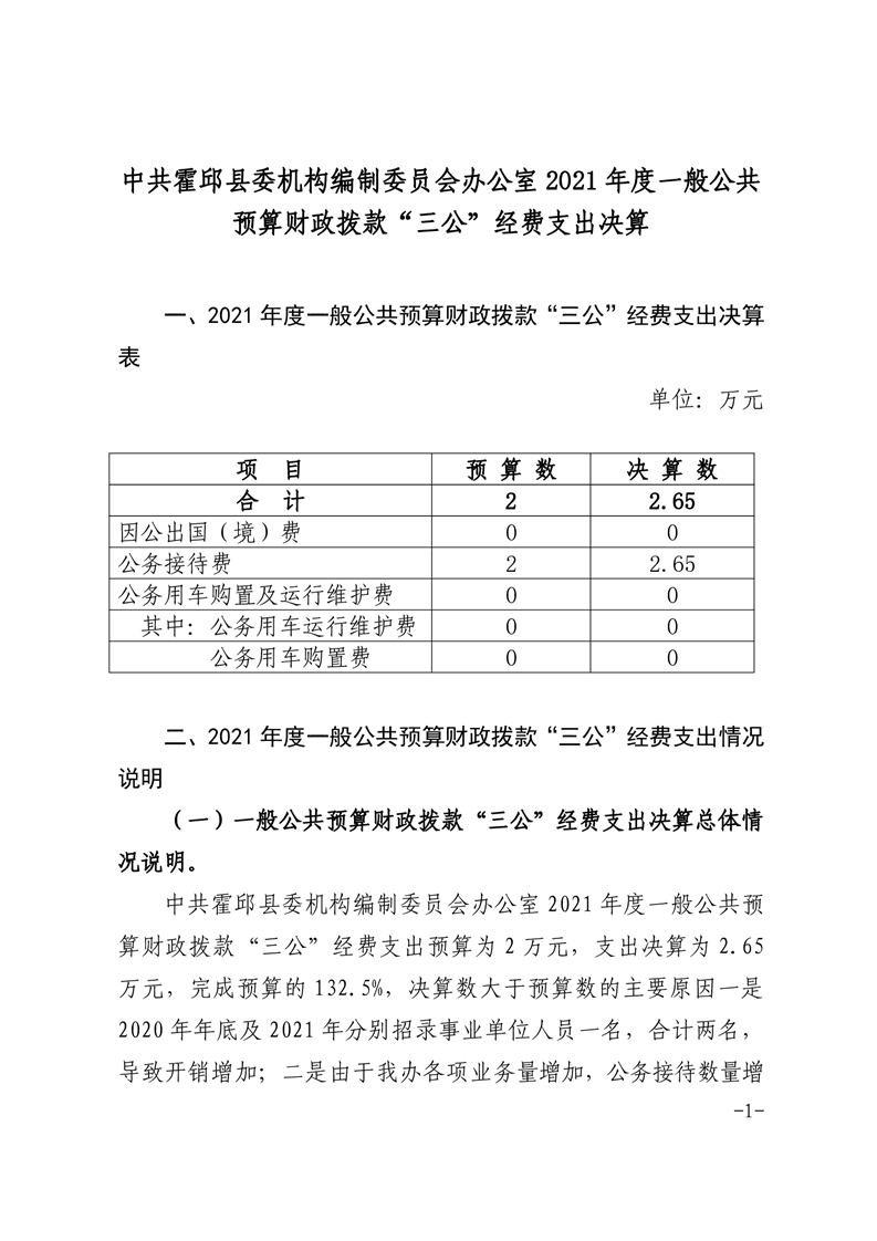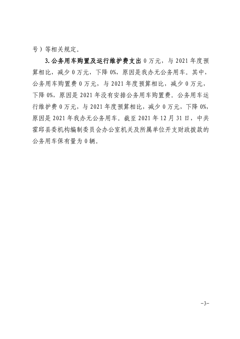 中共霍邱县委机构编制委员会办公室2021年度一般公共预算财政拨款“三公”经费支出决算