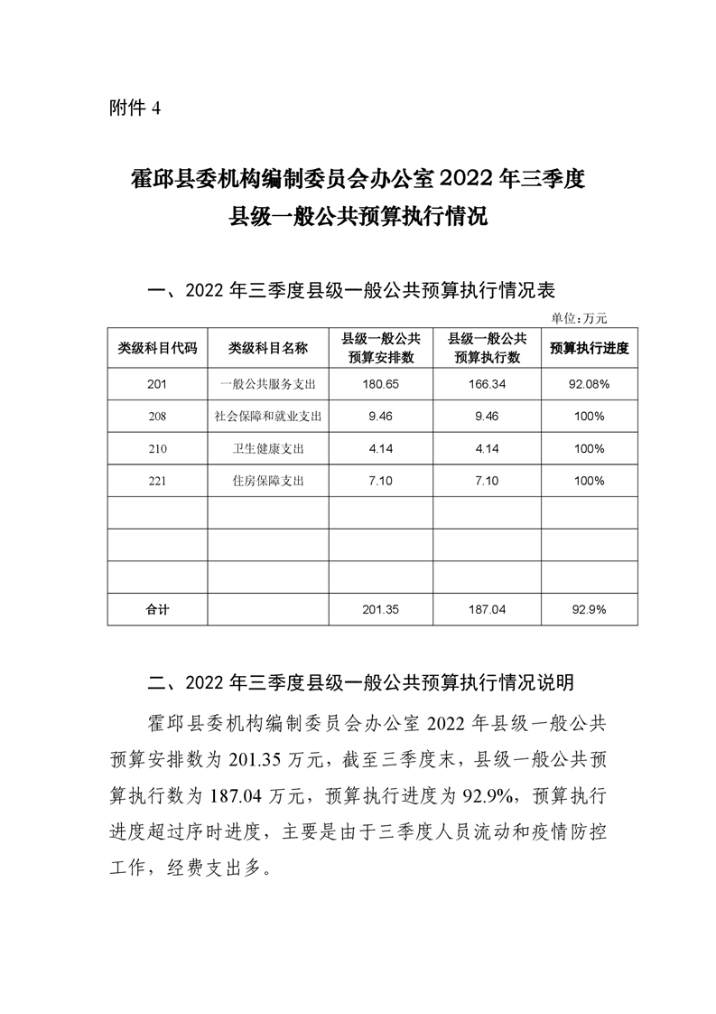 2022年三季度霍邱县委机构编制委员会办公室县级一般公共预算执行情况