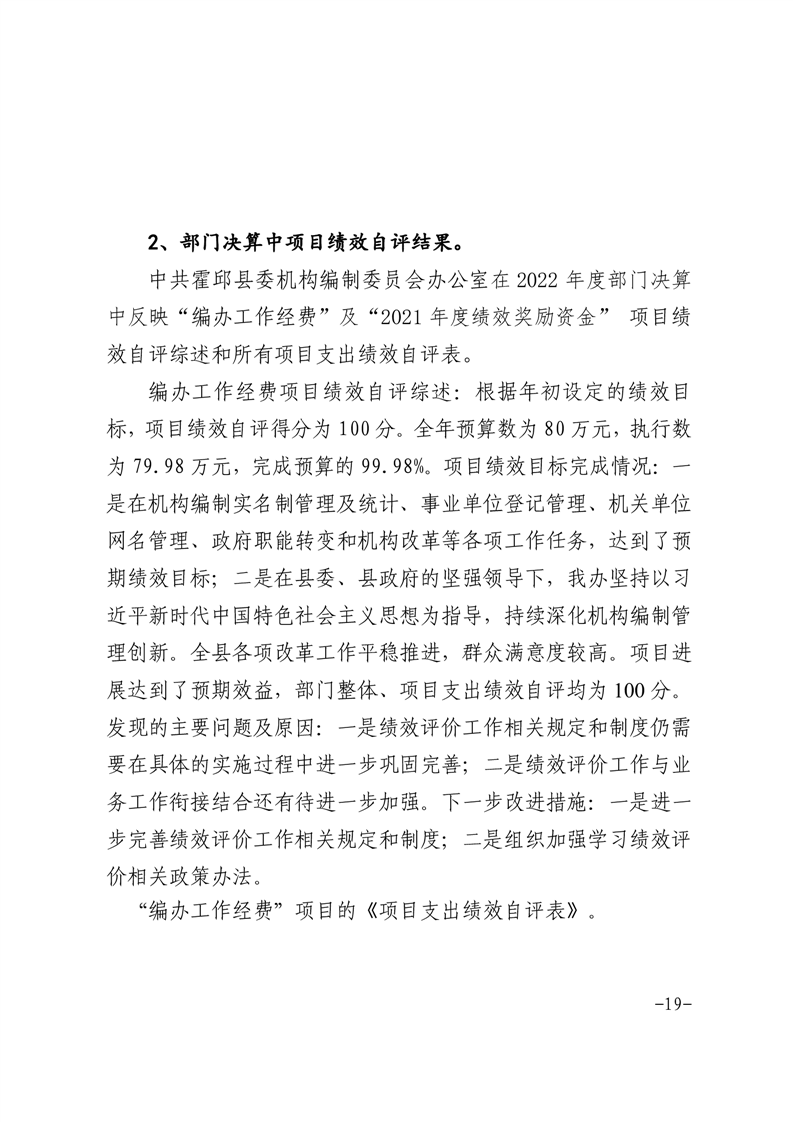 中共霍邱县委机构编制委员会办公室2022年度部门决算