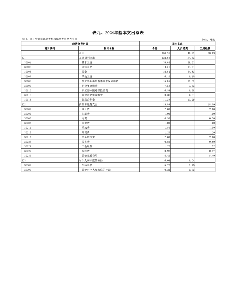 中共霍邱县委机构编制委员会办公室2024年部门预算公开