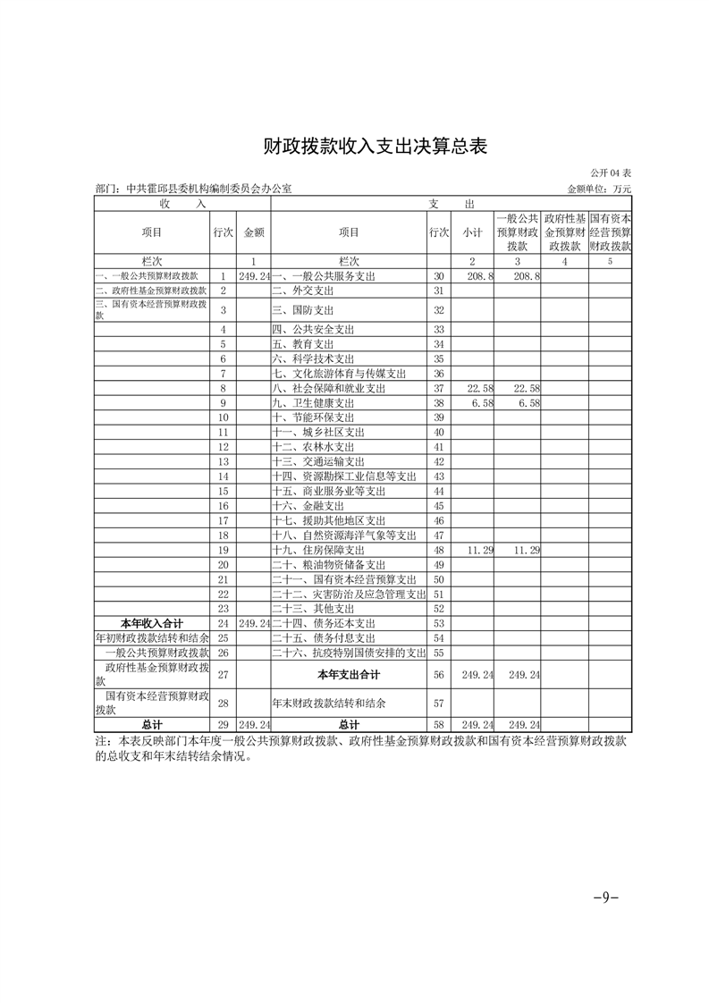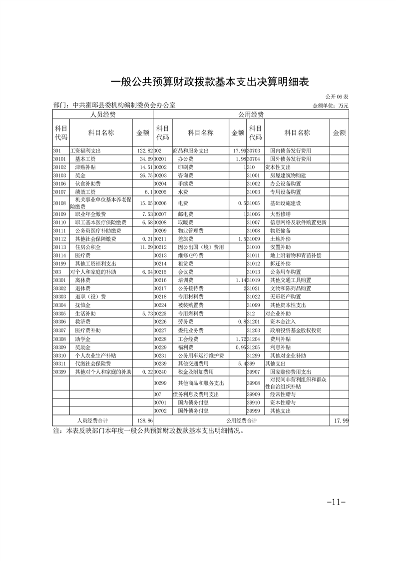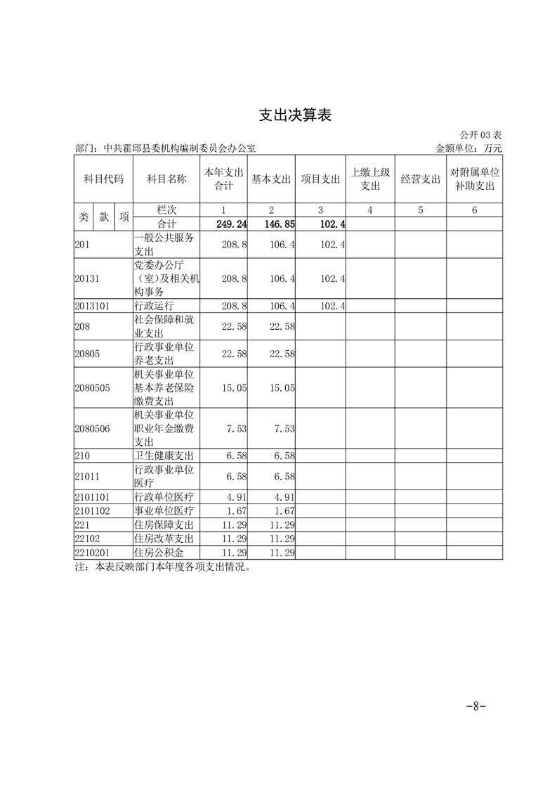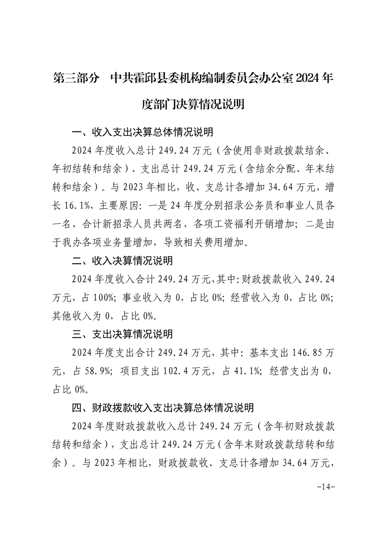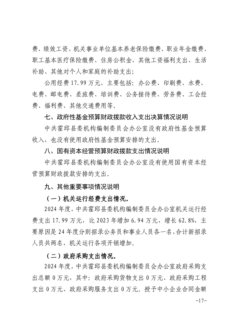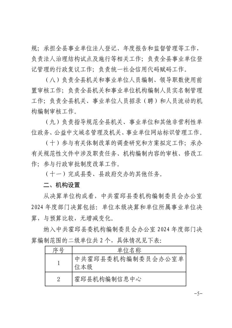 中共霍邱县委机构编制委员会办公室2024年度部门决算