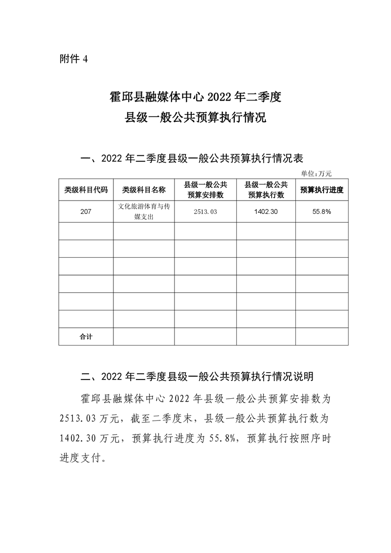 霍邱县融媒体中心2022年二季度县级一般公共预算执行情况
