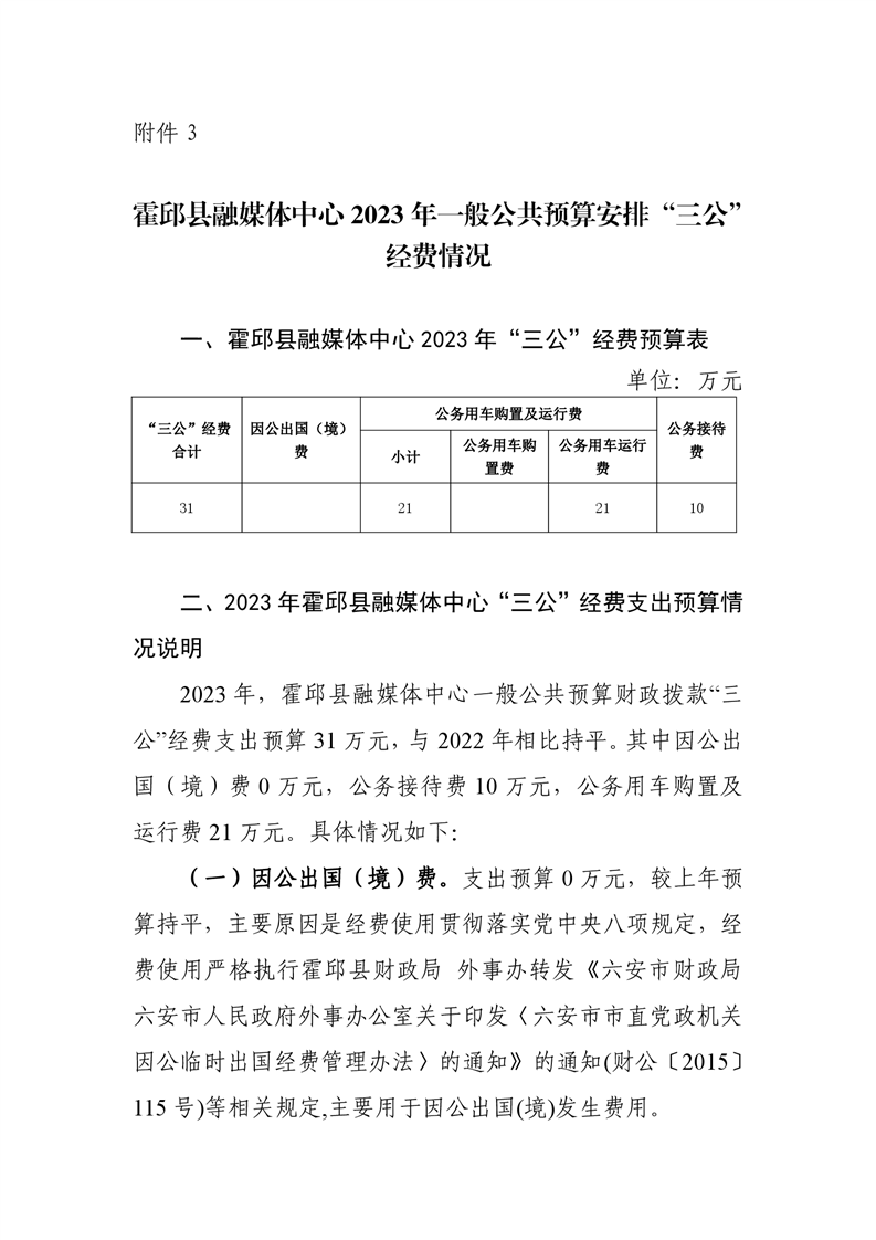 霍邱县融媒体中心2023年一般公共预算安排“三公”经费情况