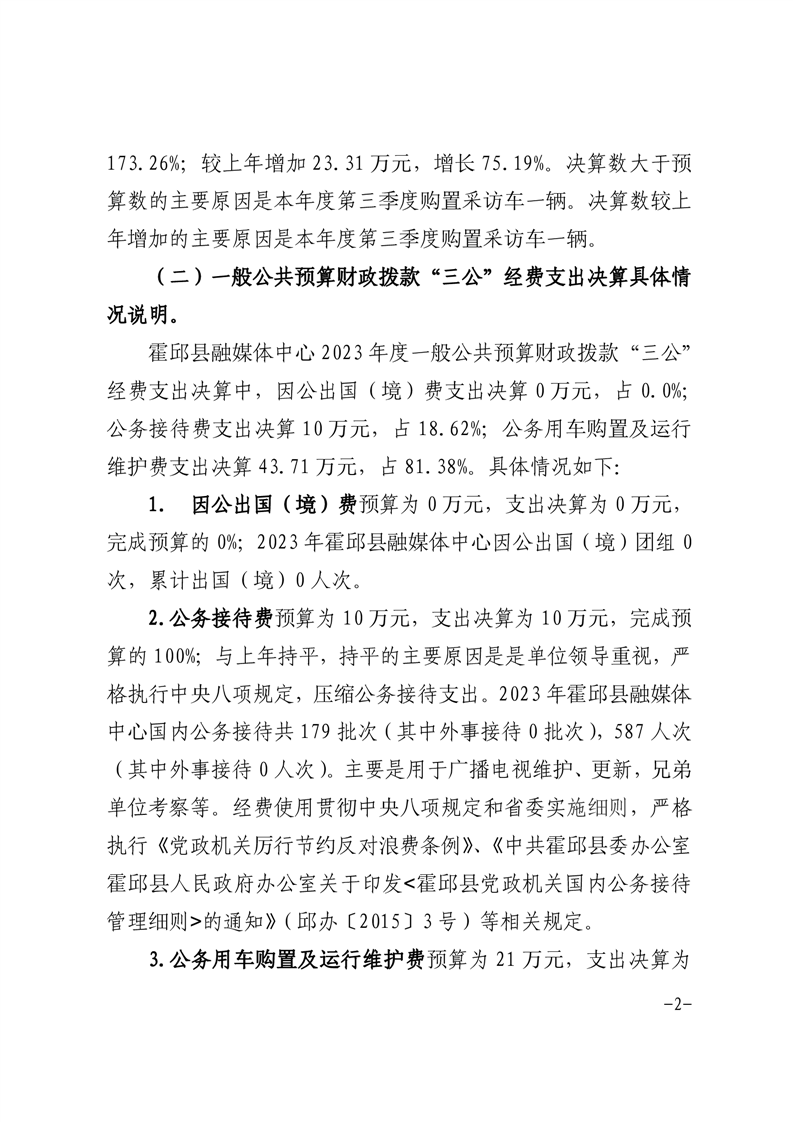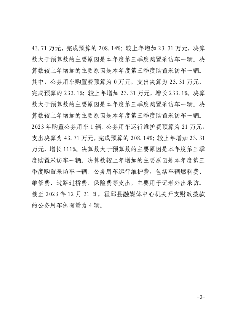 霍邱县融媒体中心2023年度一般公共预算财政拨款“三公”经费支出决算