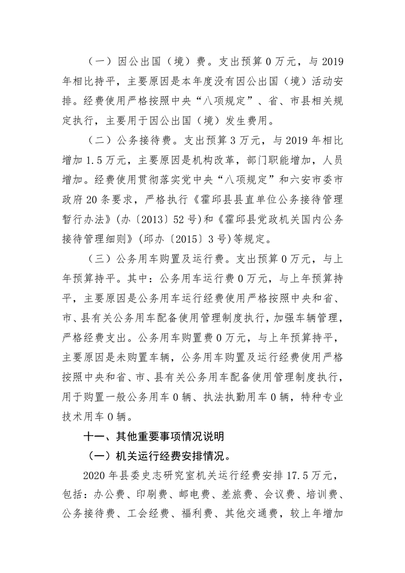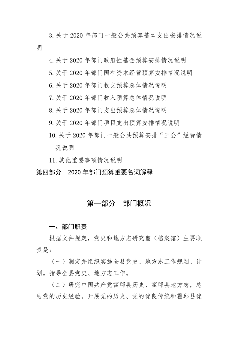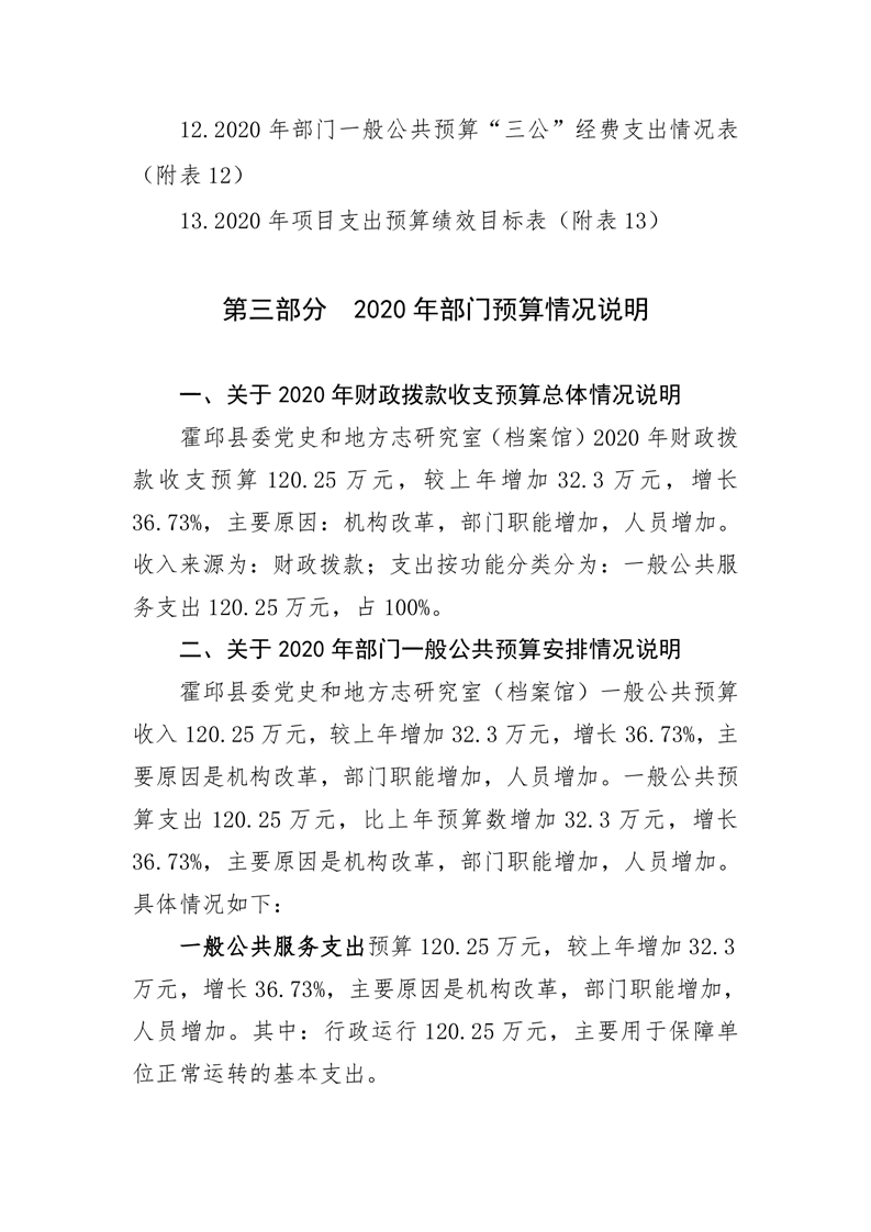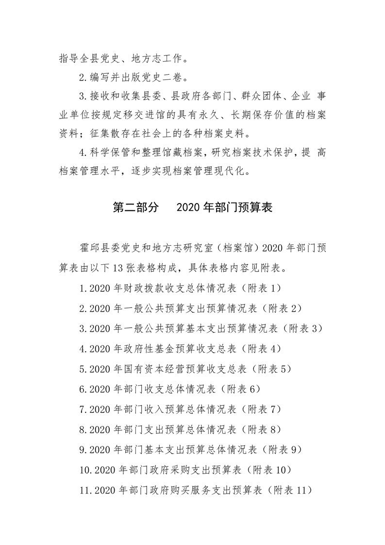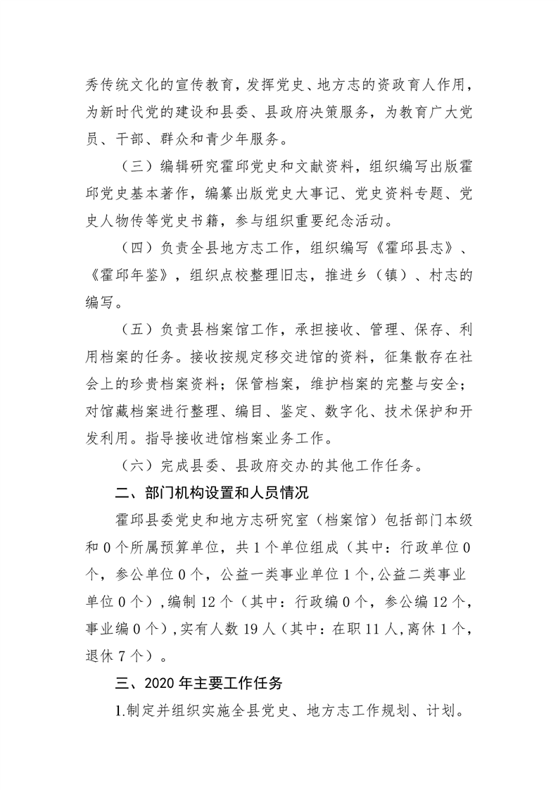 霍邱县委党史和地方志研究室(档案馆)2020年部门预算公开