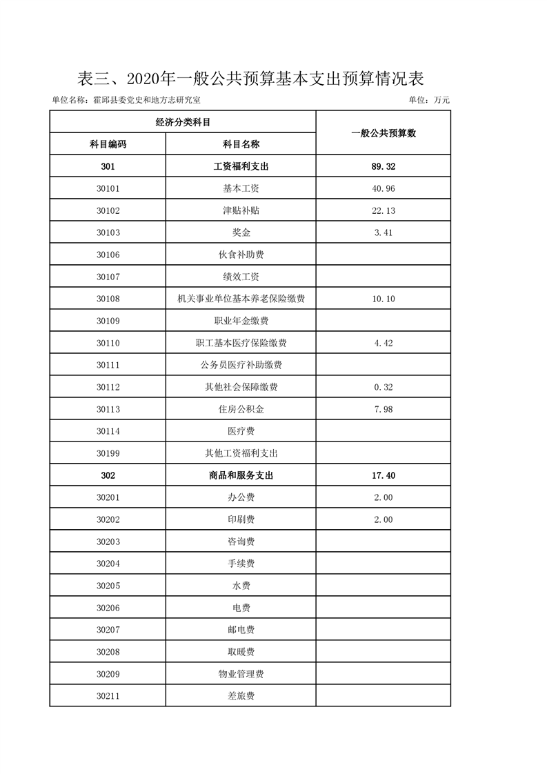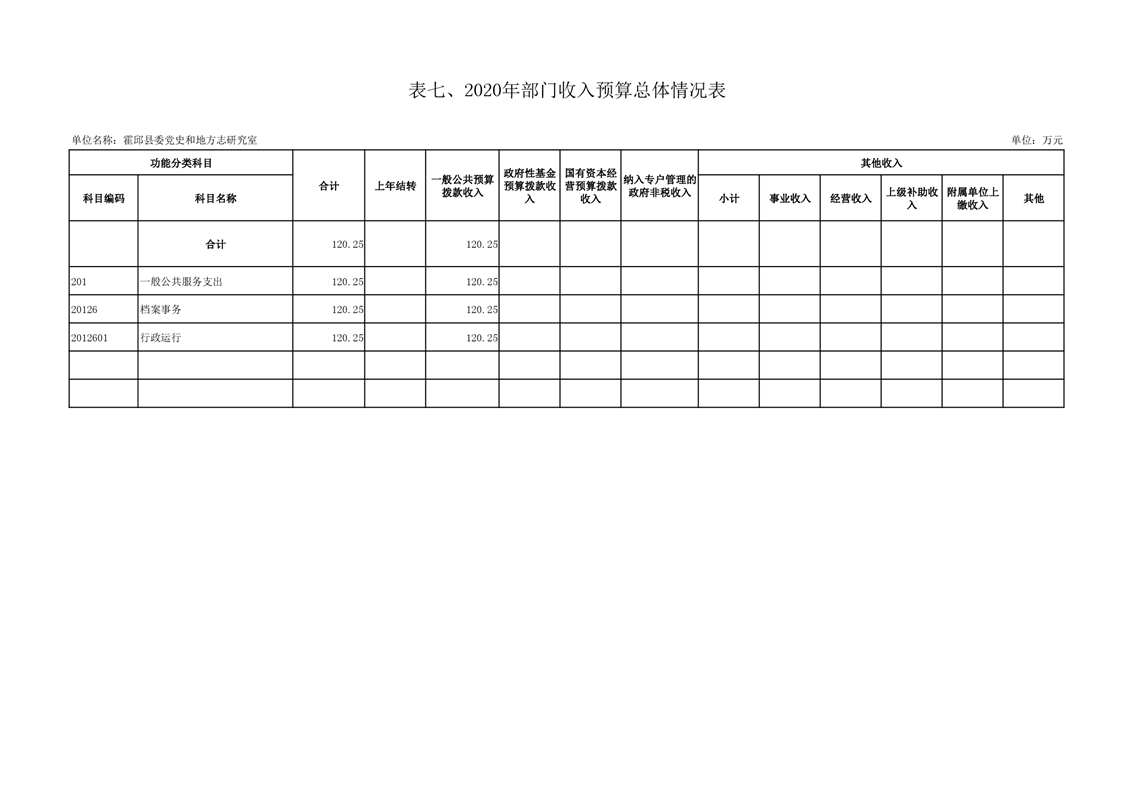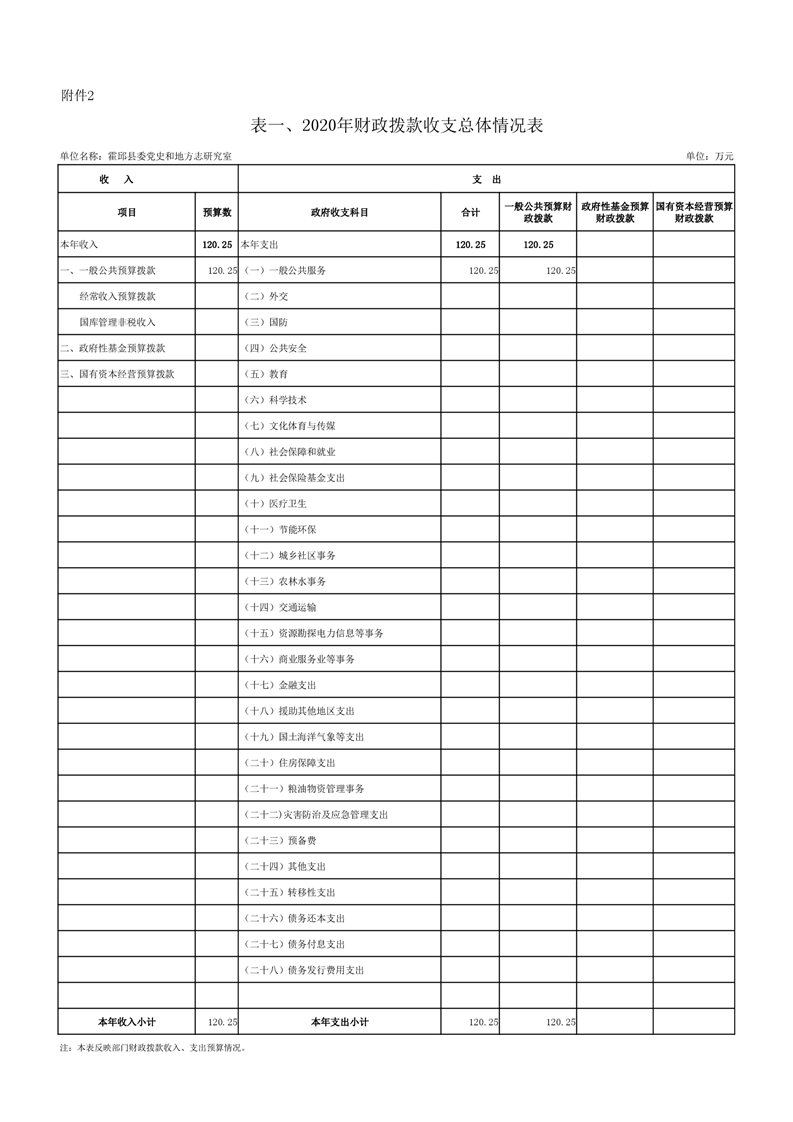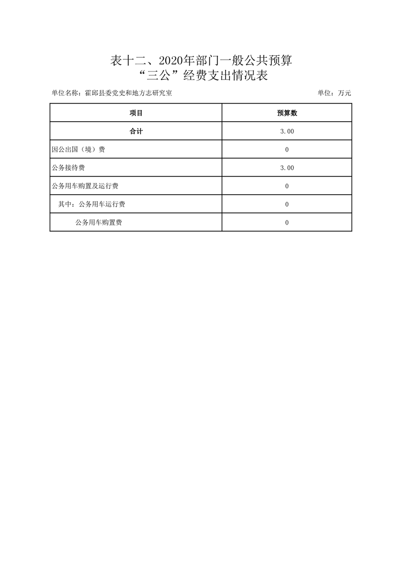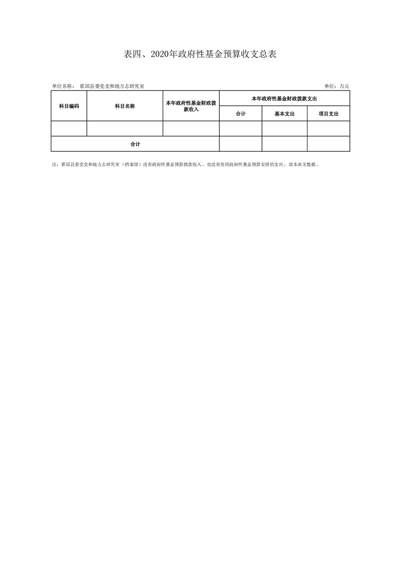 霍邱县委党史和地方志研究室(档案馆)2020年部门预算公开