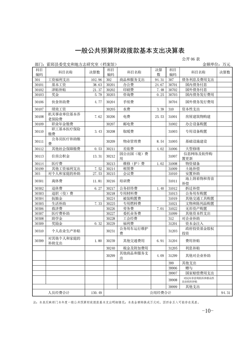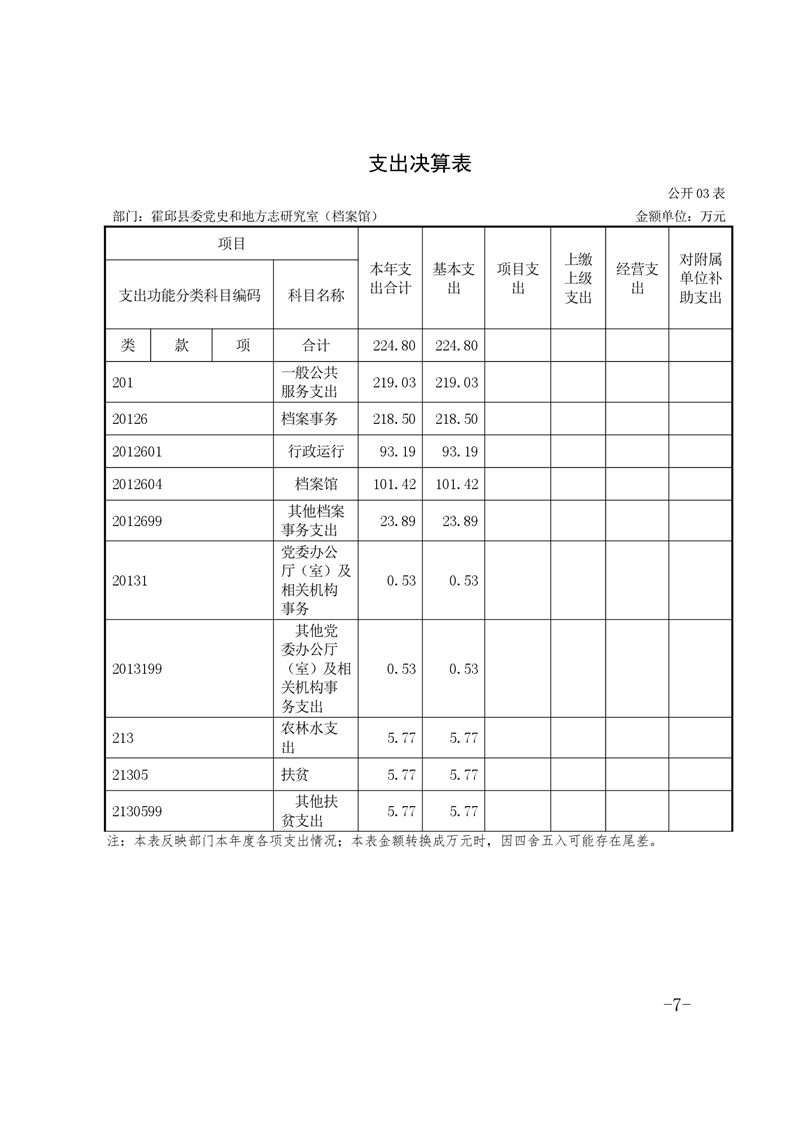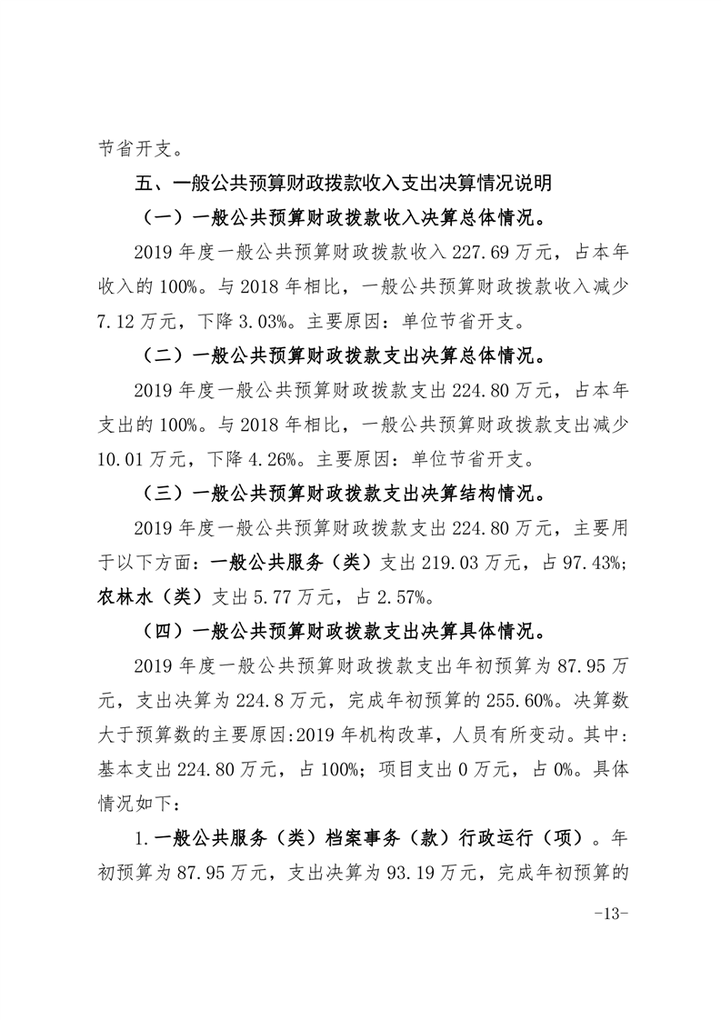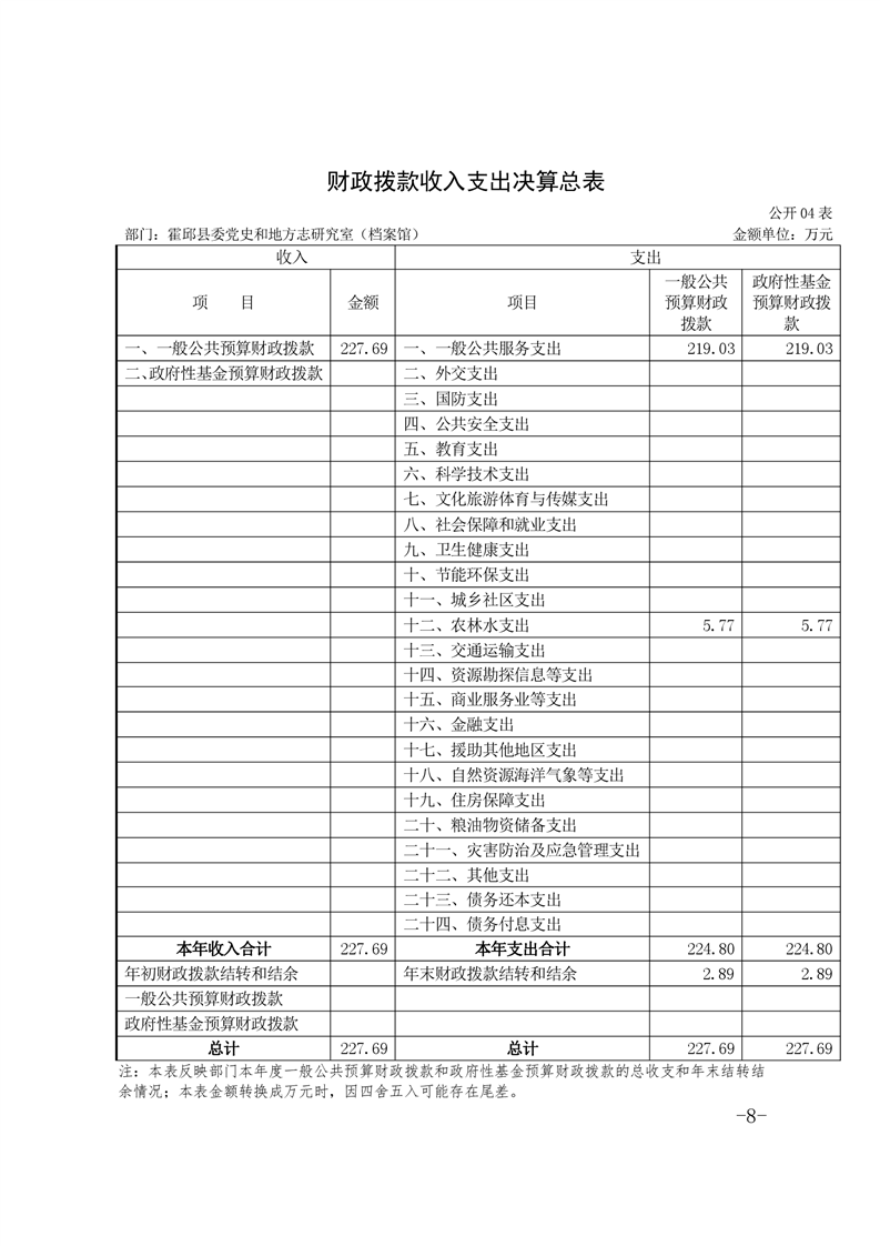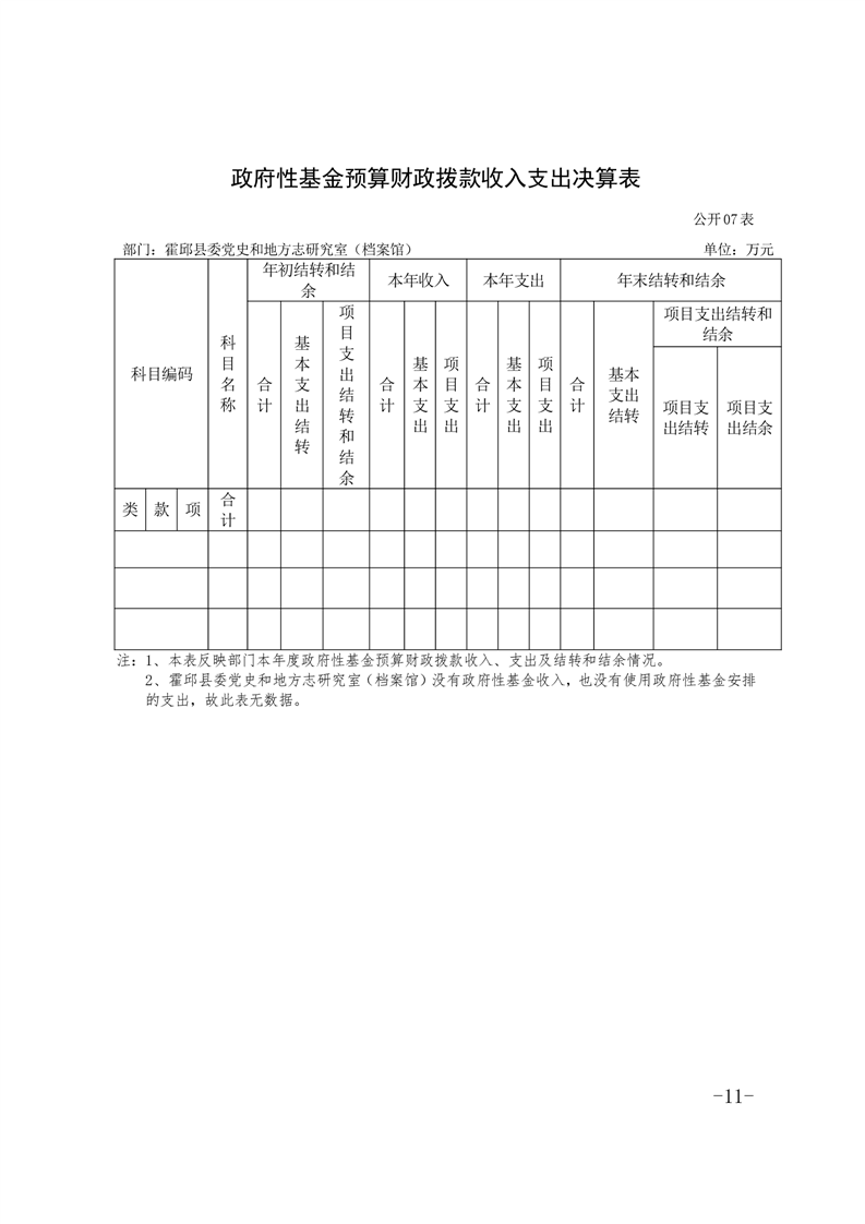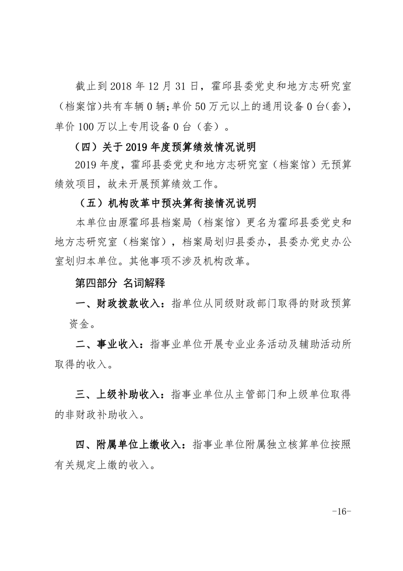 霍邱县委党史和地方志研究室(档案馆)2019年度部门决算公开情况