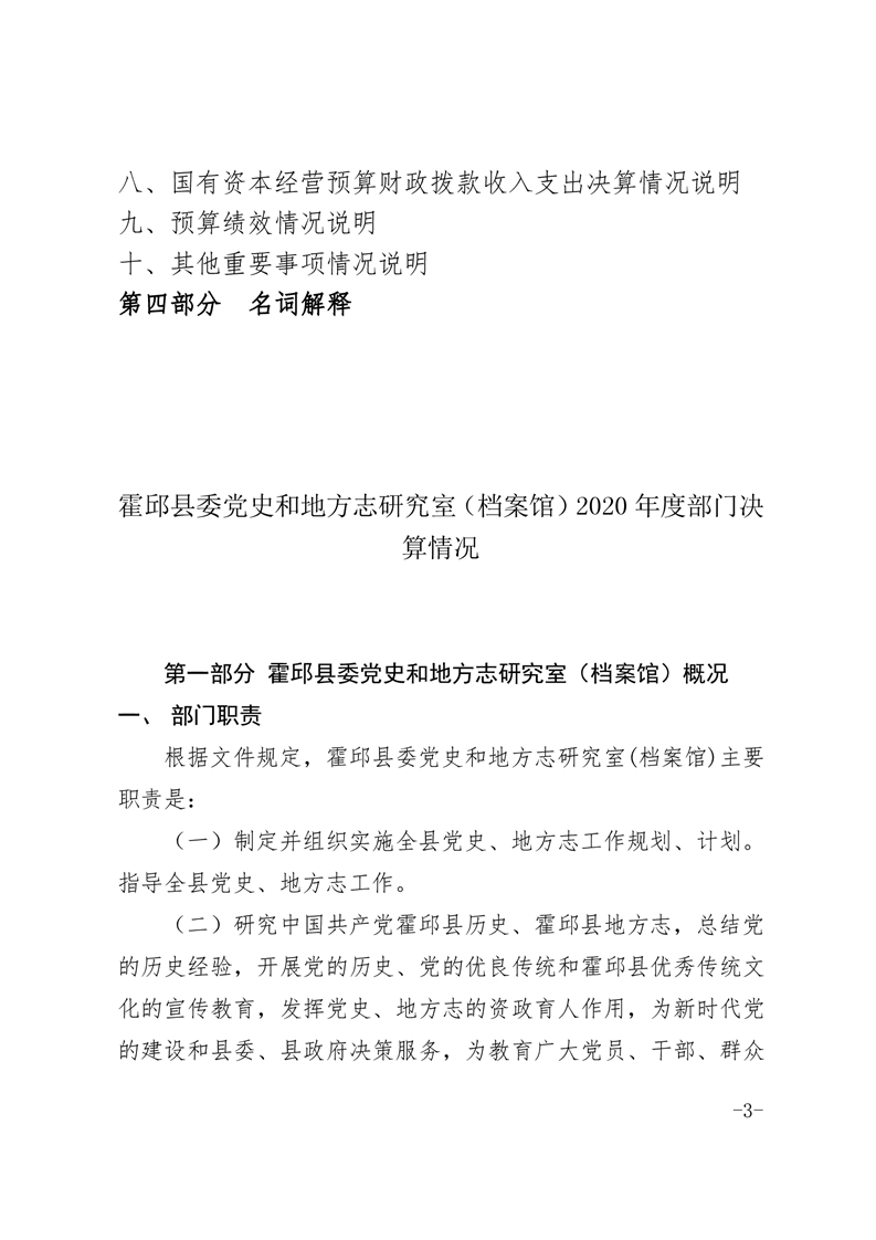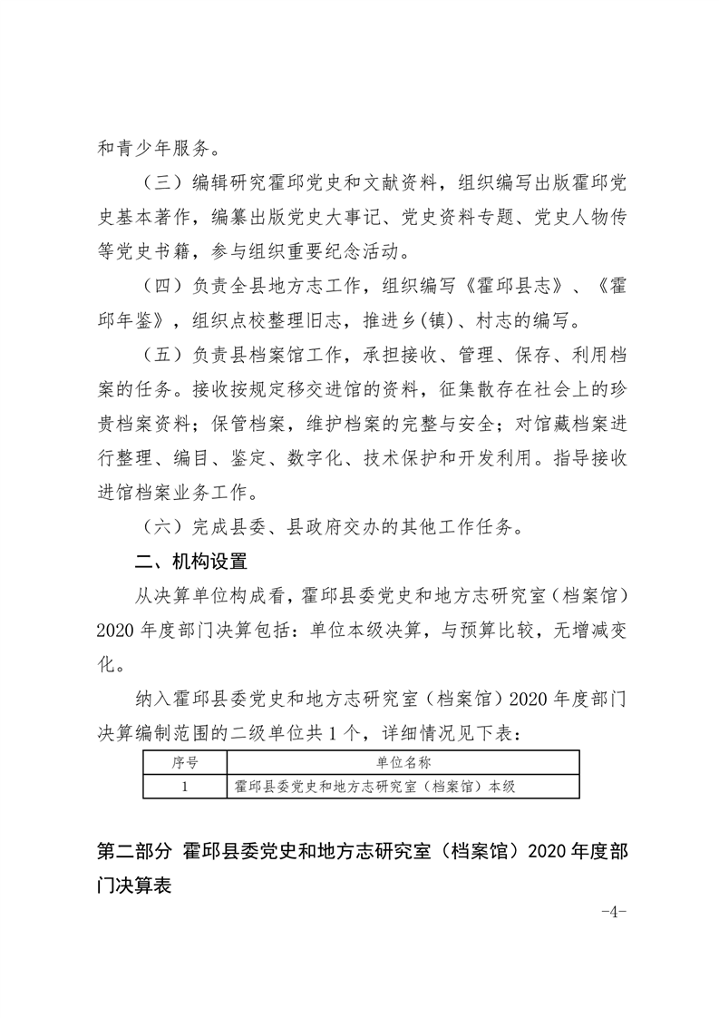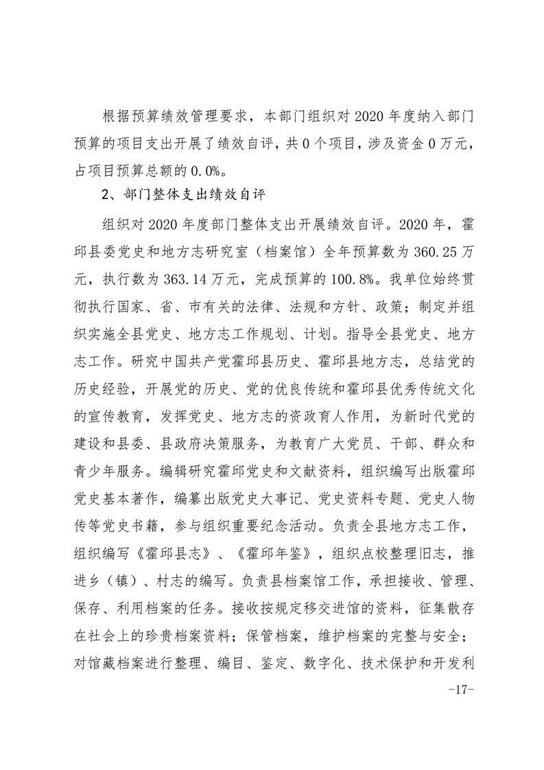 霍邱县委党史和地方志研究室(档案馆)2020年度部门决算公开