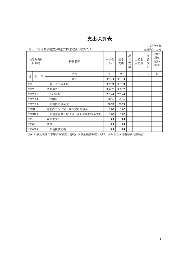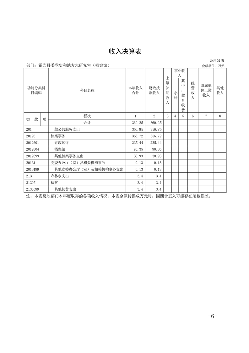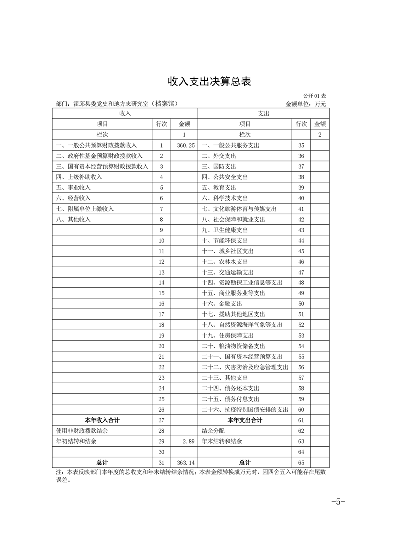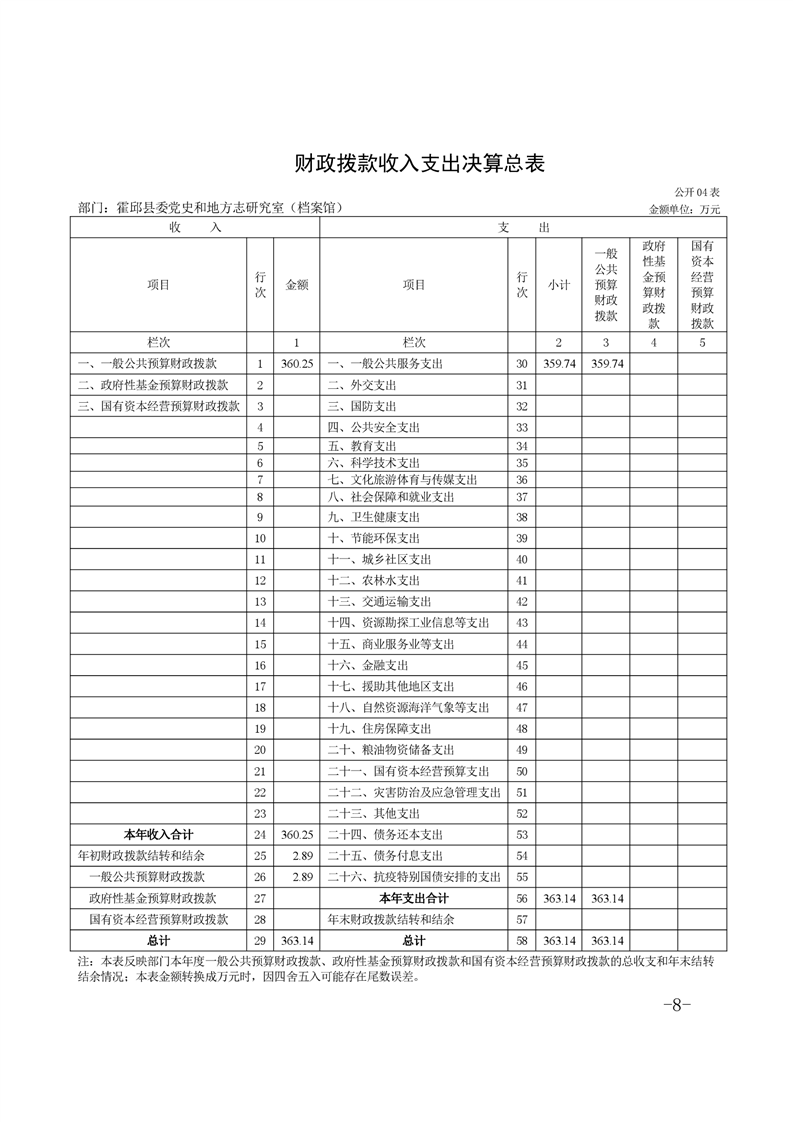 霍邱县委党史和地方志研究室(档案馆)2020年度部门决算公开