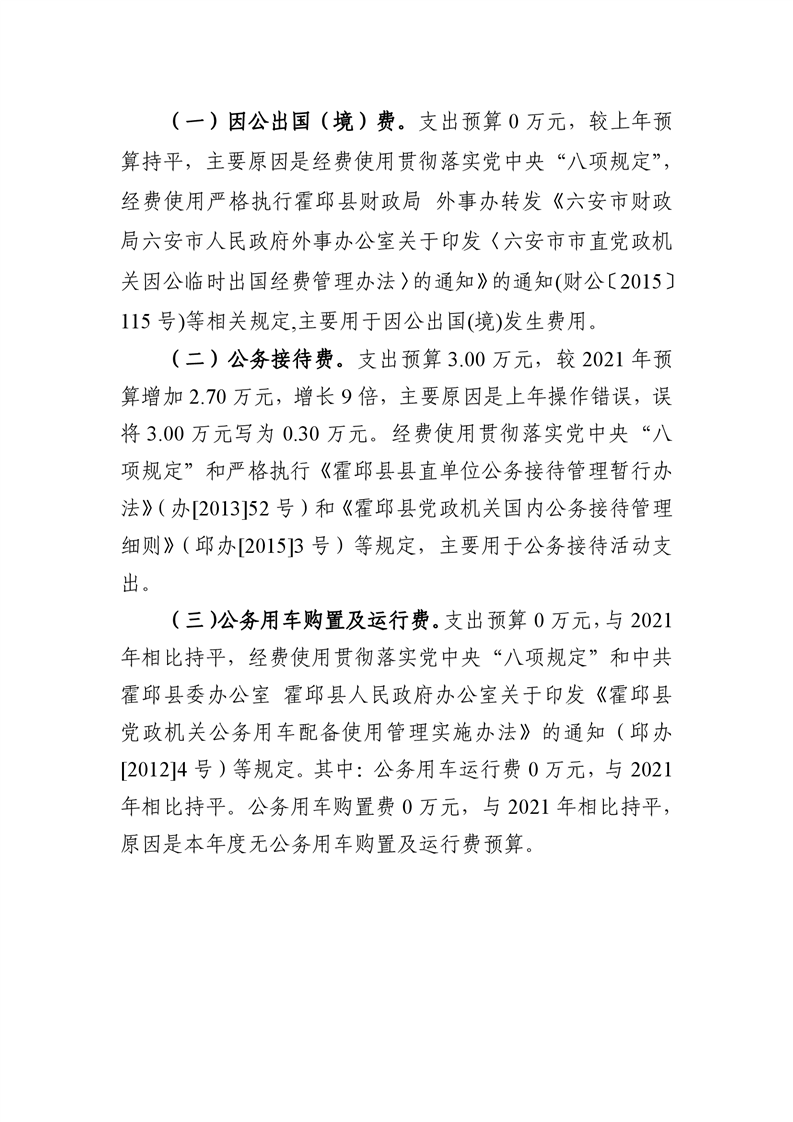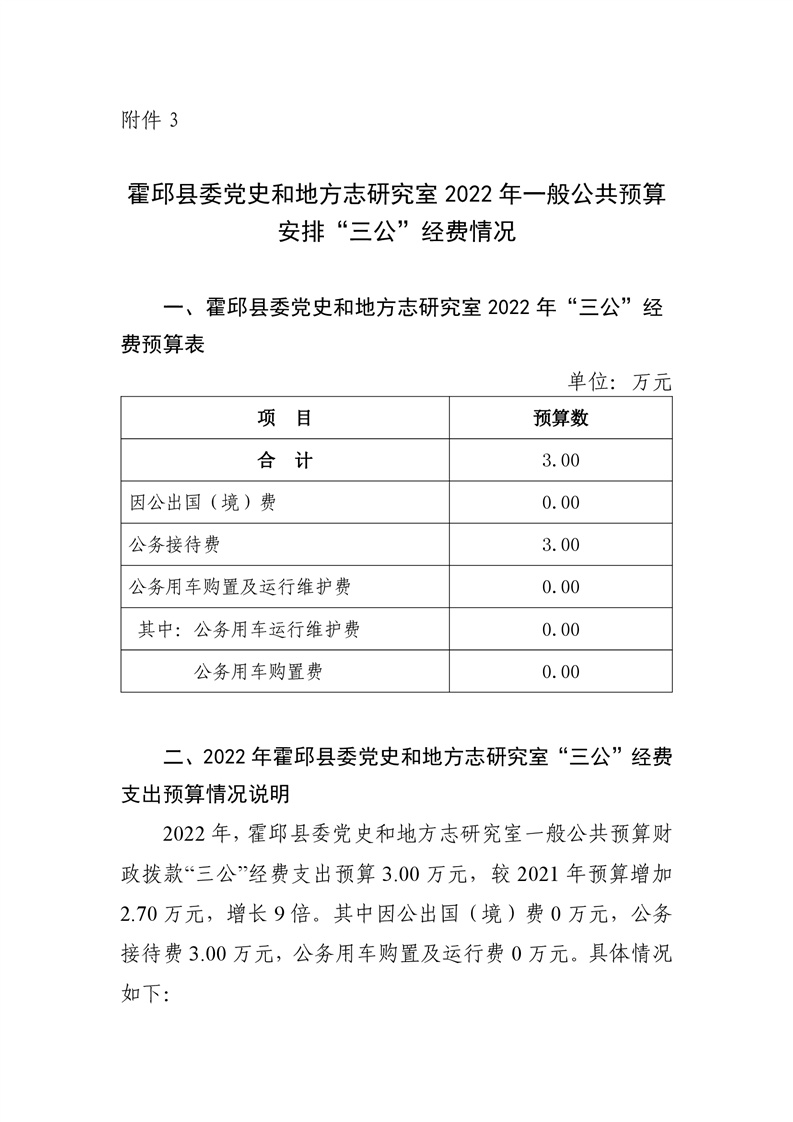 霍邱县委党史和地方志研究室2022年部门一般公共预算安排“三公”经费情况公开